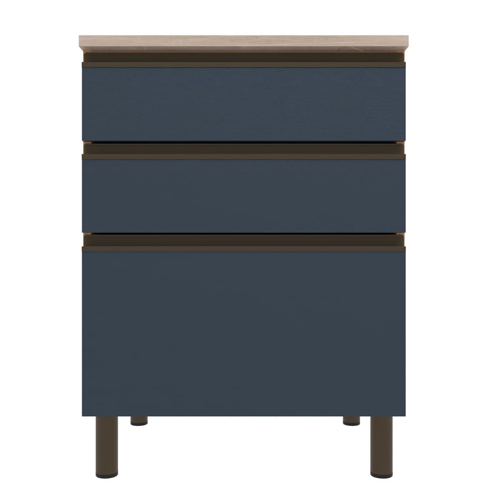 Balcão Bartira Cristal em MDP com 2 Gavetas, 1 Gavetão, 60cm de largura - Lâmina Mel/Azul Royal