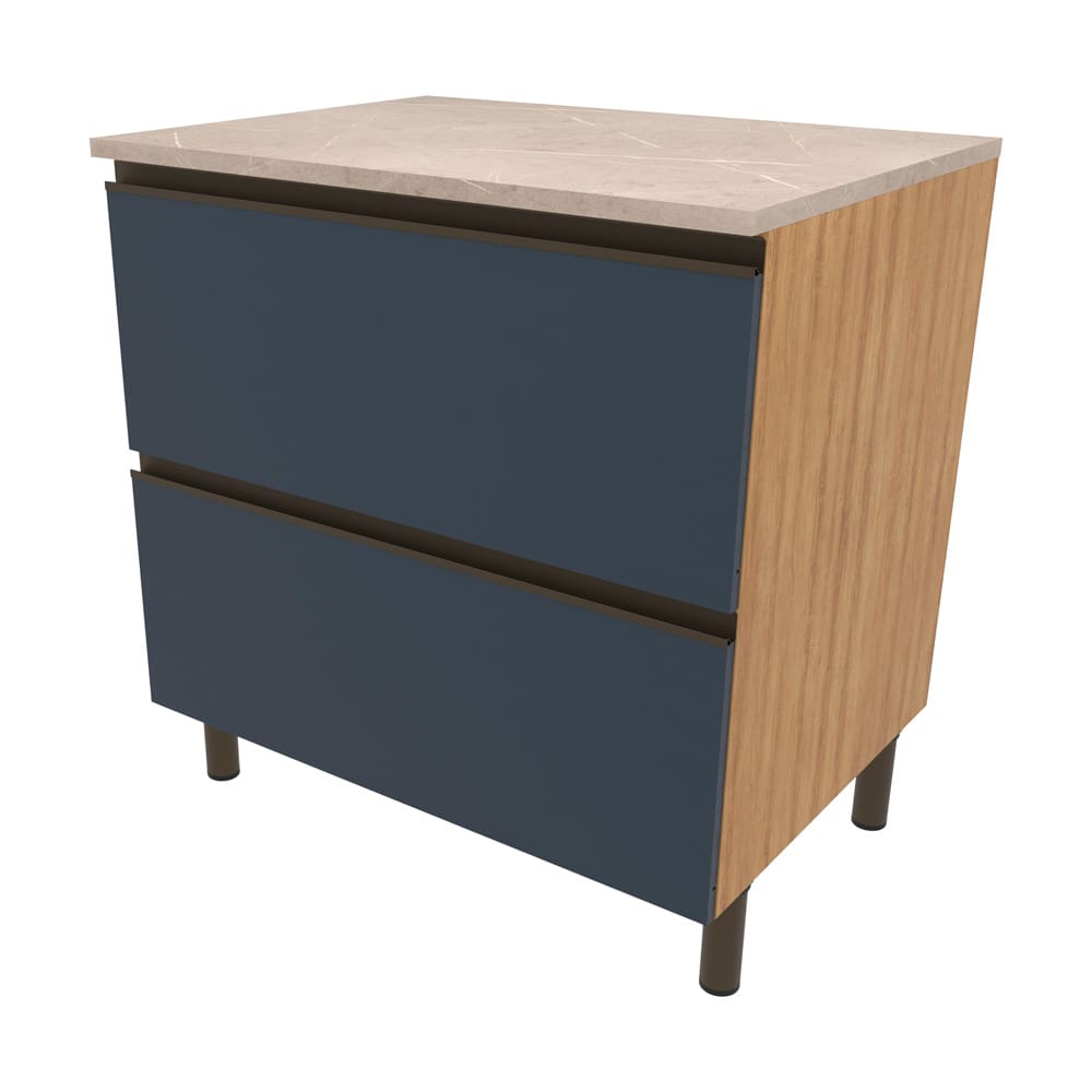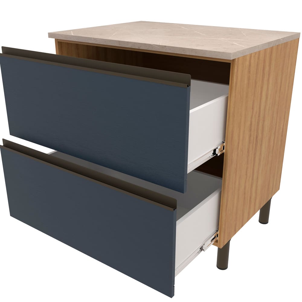 Balcão Bartira Cristal em MDP com 2 Gavetões, 80cm de largura - Lâmina de Mel/Azul Royal