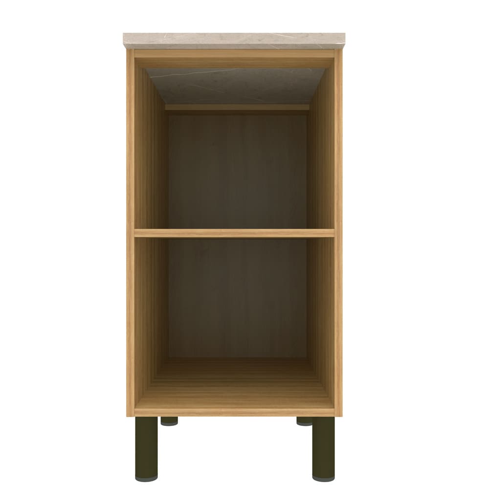 Equipado com 1 porta e 1 prateleira interna, o balcão garante organização e otimização do espaço, facilitando o armazenamento de utensílios de cozinha ou itens decorativos. Os puxadores em alumínio, discretos e resistentes, proporcionam praticidade no uso, enquanto os pés em alumínio com niveladores garantem a instalação perfeita, adaptando o móvel a diferentes tipos de piso.