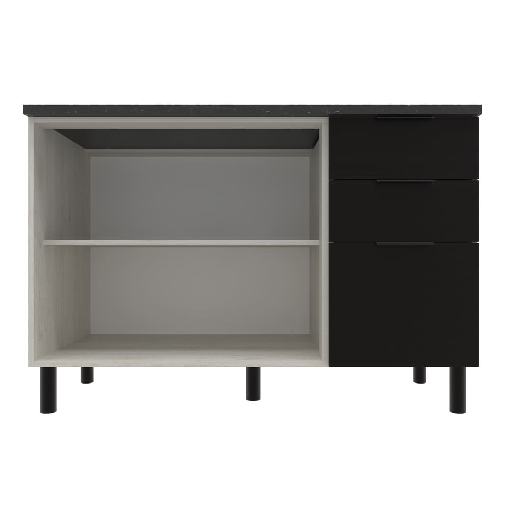 Balcão Triplo Bartira Rubi com 2 Portas, 2 Gavetas, 1 Gavetão, 1 Prateleira e 120cm de Largura - Freixo/Preto Poah