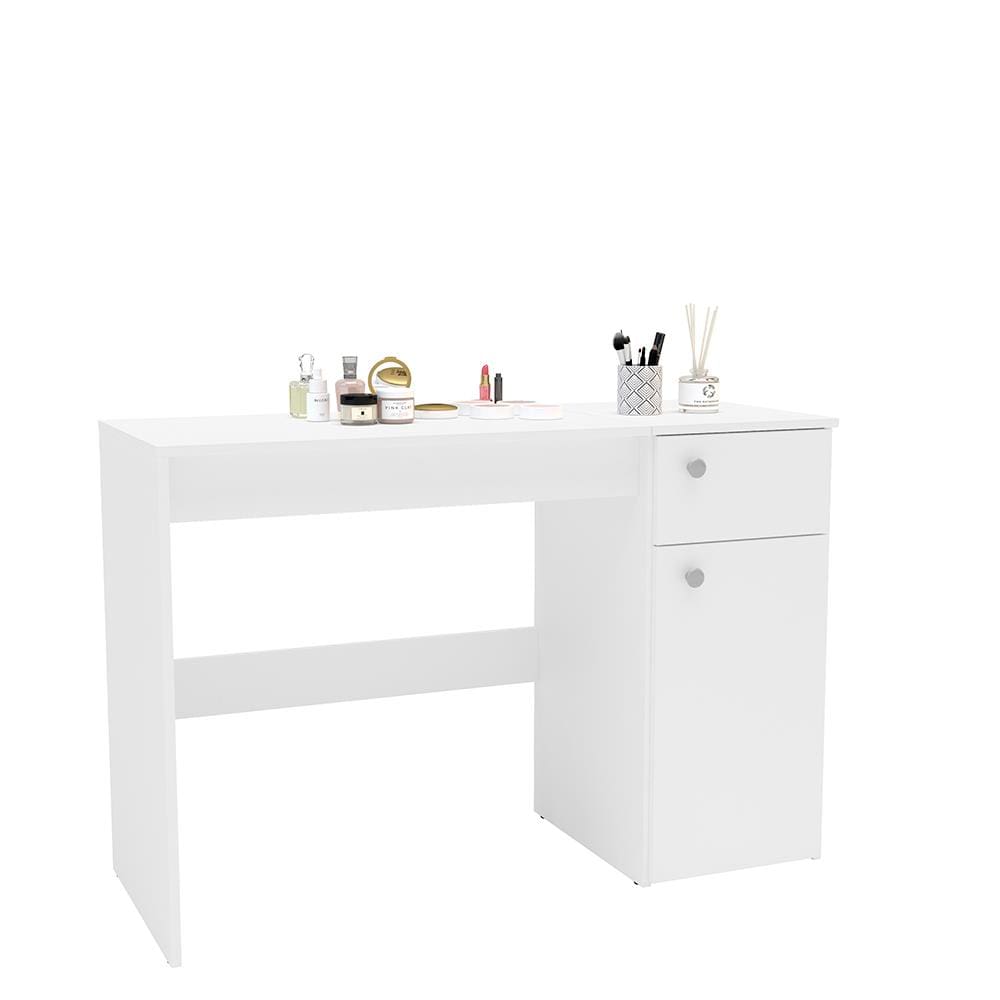 - Design multifuncional: penteadeira e escrivaninha no mesmo móvel.