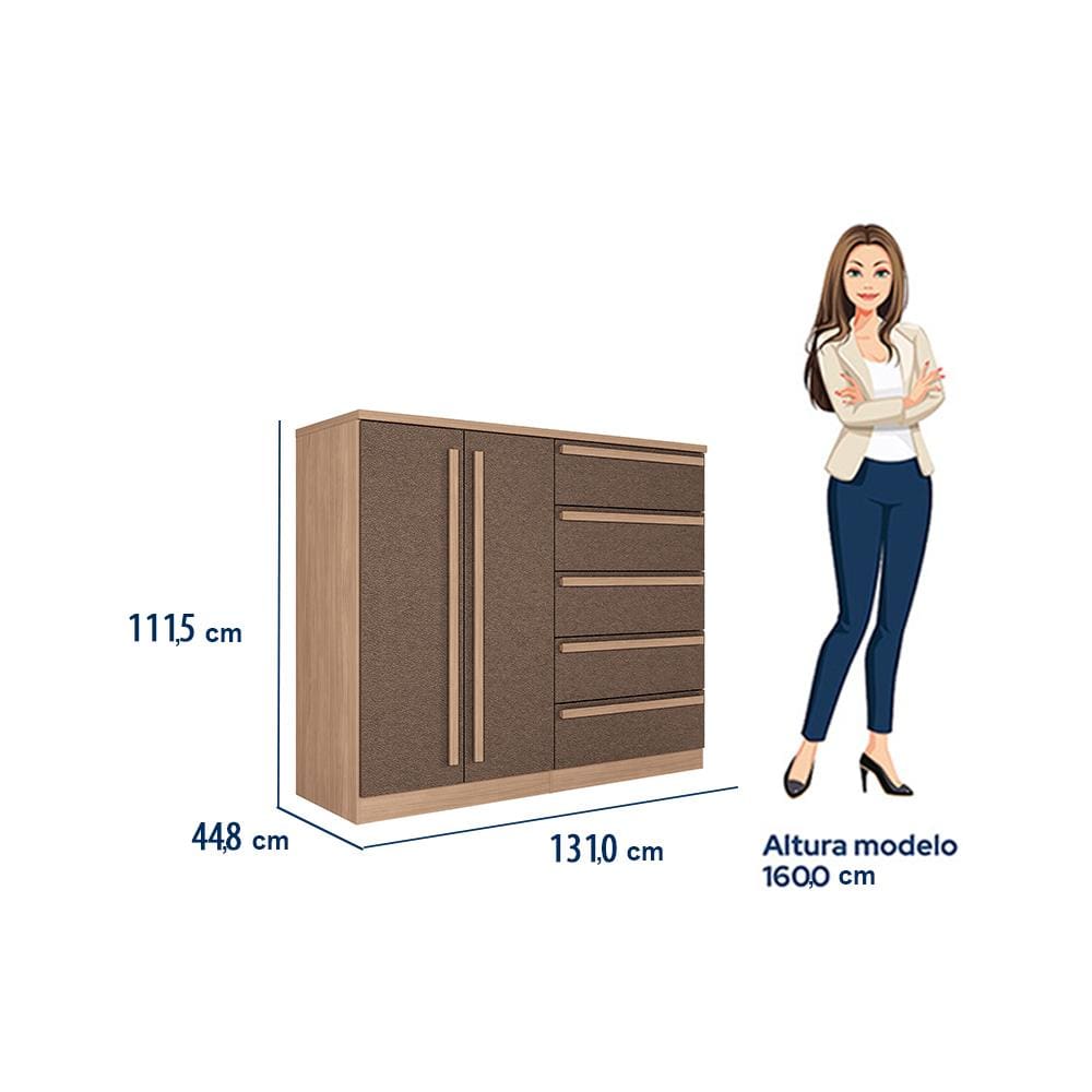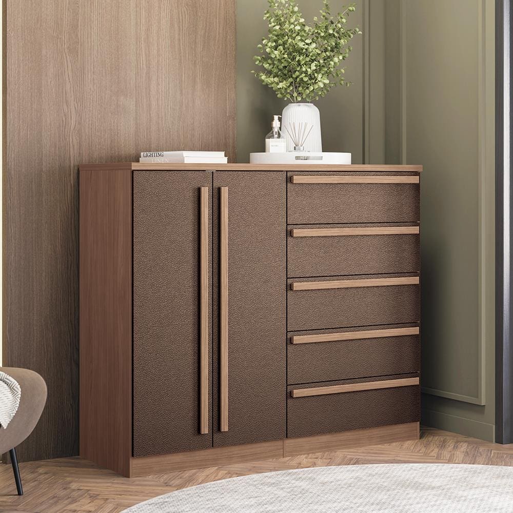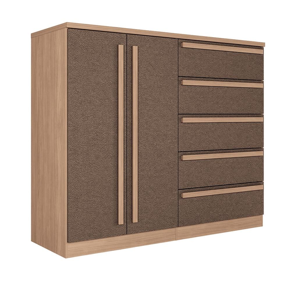 Cômoda Santos Andirá Chicago 5 Gavetas e 2 Portas - Wood/Couro Terracota