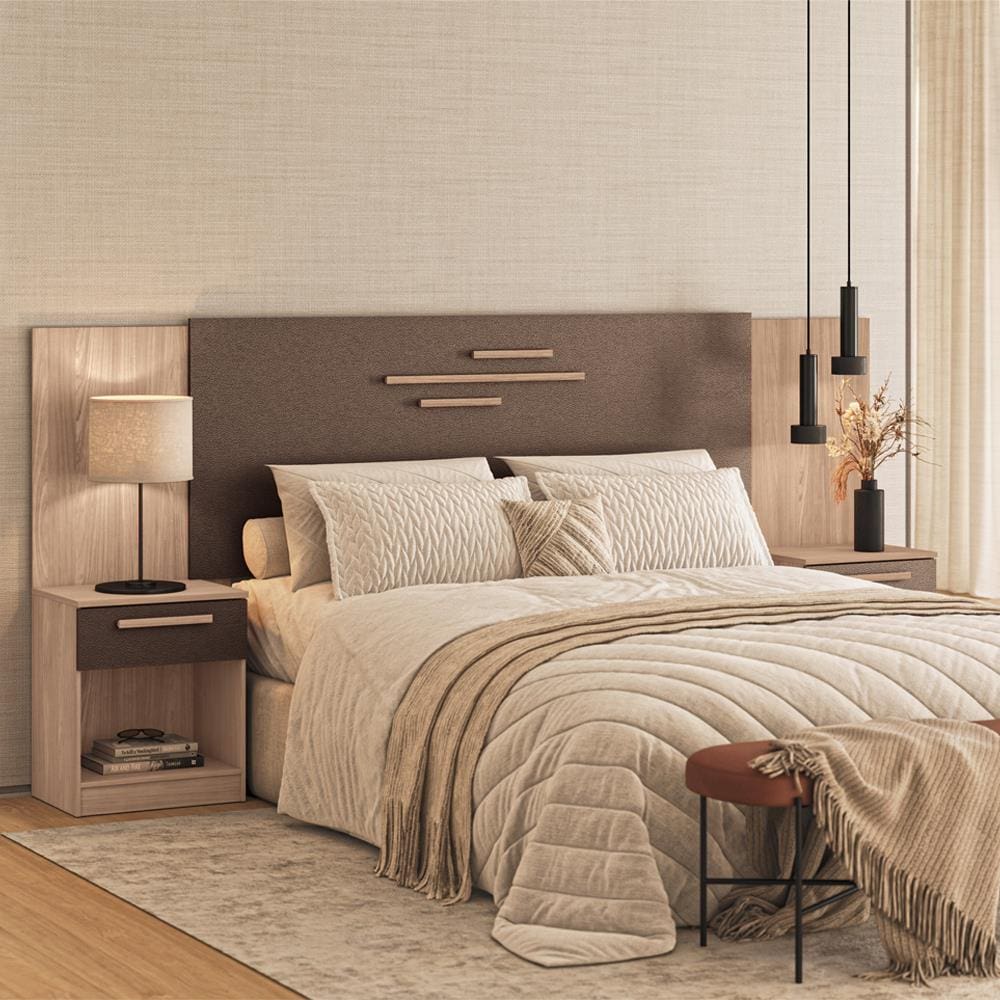 Observações: -ATENÇÃO: O item é composto APENAS pela Cabeceira para Cama Casal Santos Andirá Chicago com 2 Gavetas – Wood/Couro Terracota. Os demais componentes nas imagens são apenas ilustrativos.
