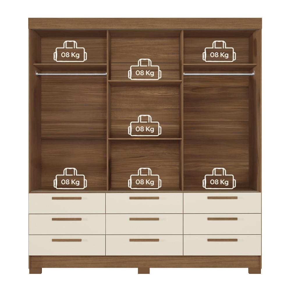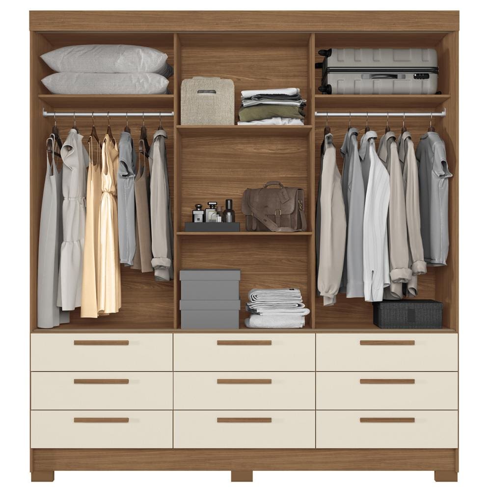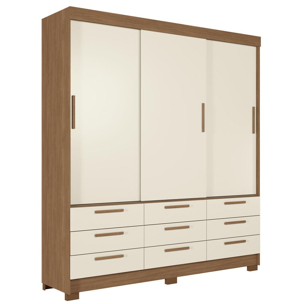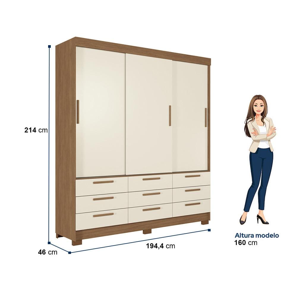 Guarda-Roupa Casal Santos Andirá Morretes com 3 Portas de Correr, 9 Gavetas e 4 Prateleiras - 194,4cm de largura