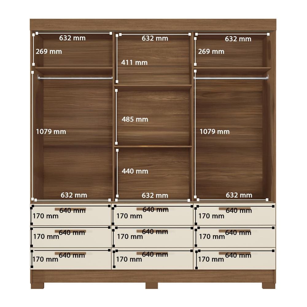 Conteúdo da Embalagem: -1 Guarda-Roupa Casal Santos Andirá Morretes com 3 Portas de Correr, 9 Gavetas e 4 Prateleiras - 194,4cm de largura;