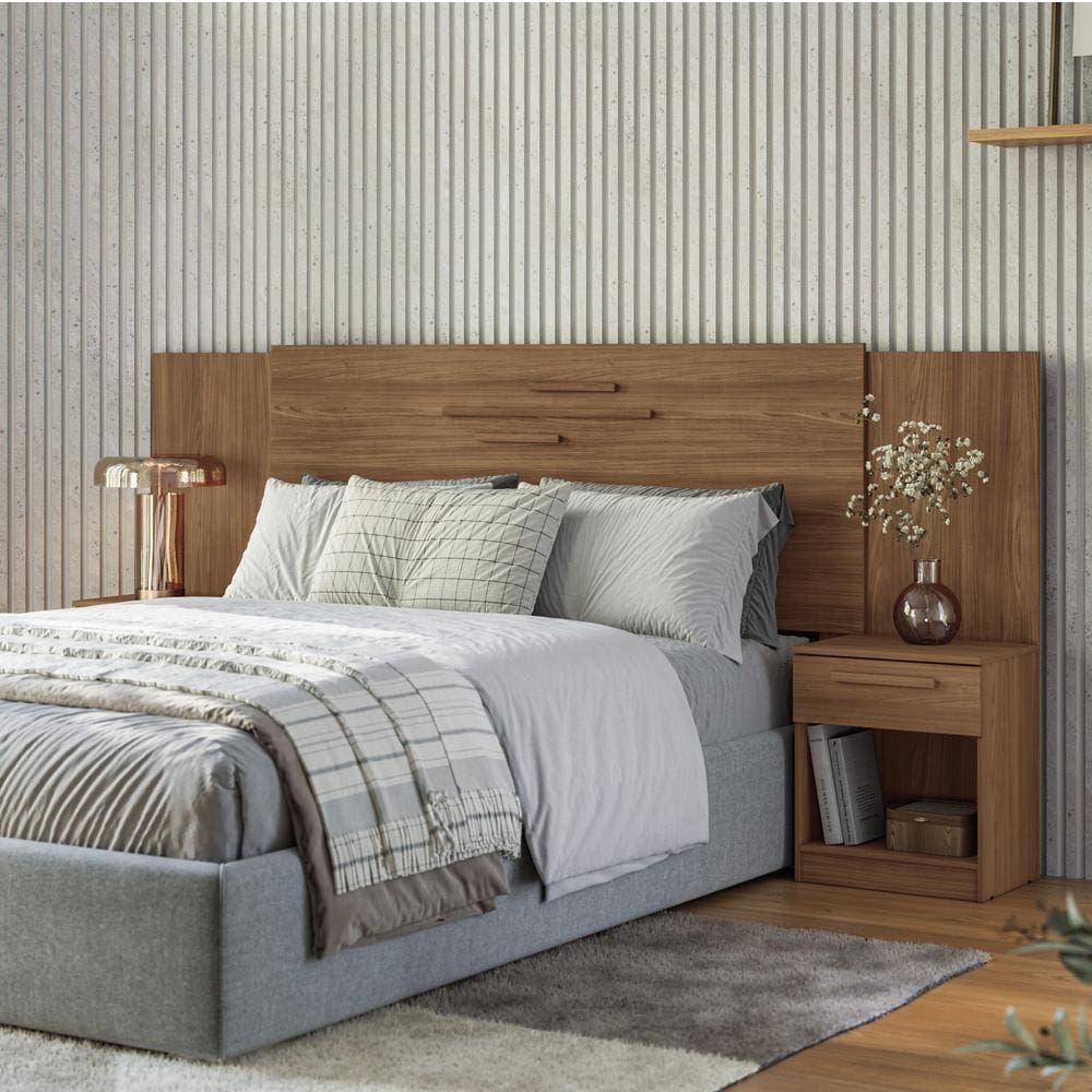A Cabeceira Loanda se destaca não apenas pela sua aparência, mas também pela praticidade. Ela conta com 2 gavetas, uma de cada lado, que deslizam suavemente sobre corrediças telescópicas, proporcionando um local perfeito para armazenar pequenos objetos como livros, celulares, ou itens decorativos. Esse detalhe não só aumenta a funcionalidade do móvel, mas também contribui para manter o ambiente mais organizado e livre de bagunça. Além disso, os puxadores em MDF revestidos adicionam um toque de requinte ao design.