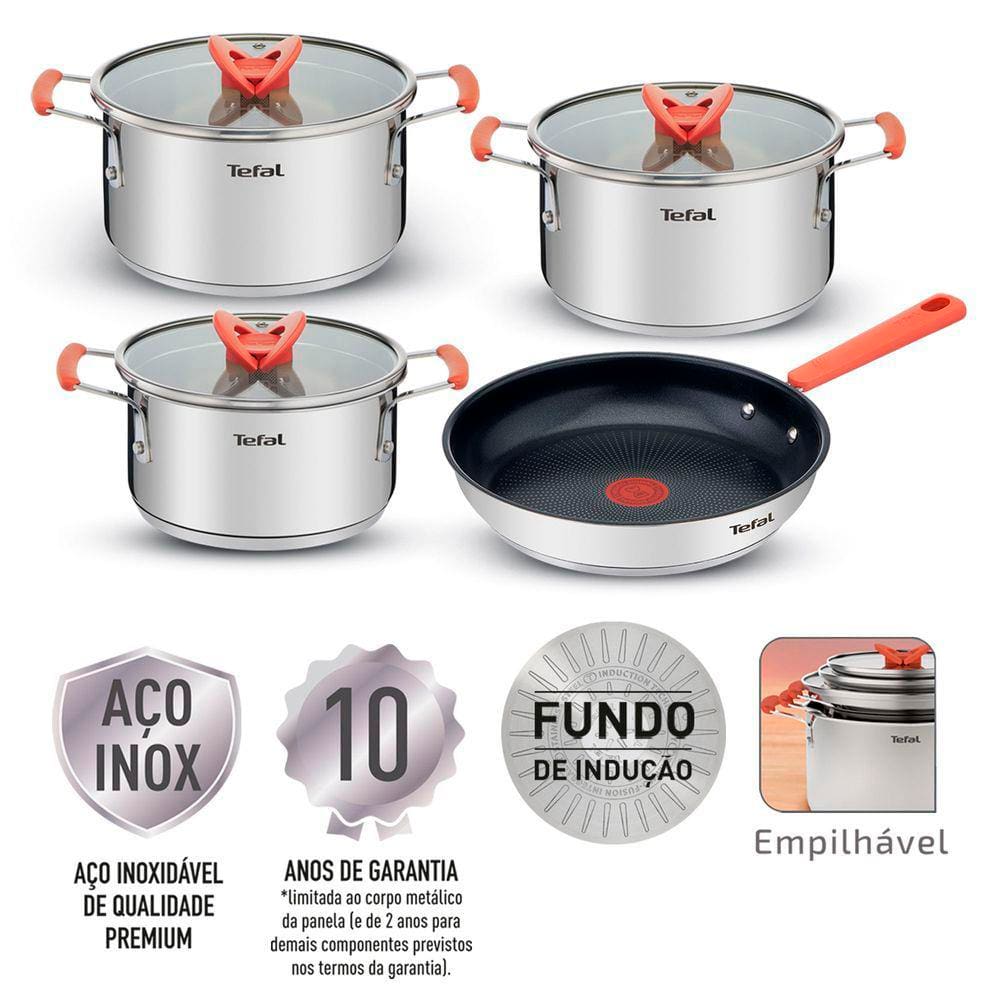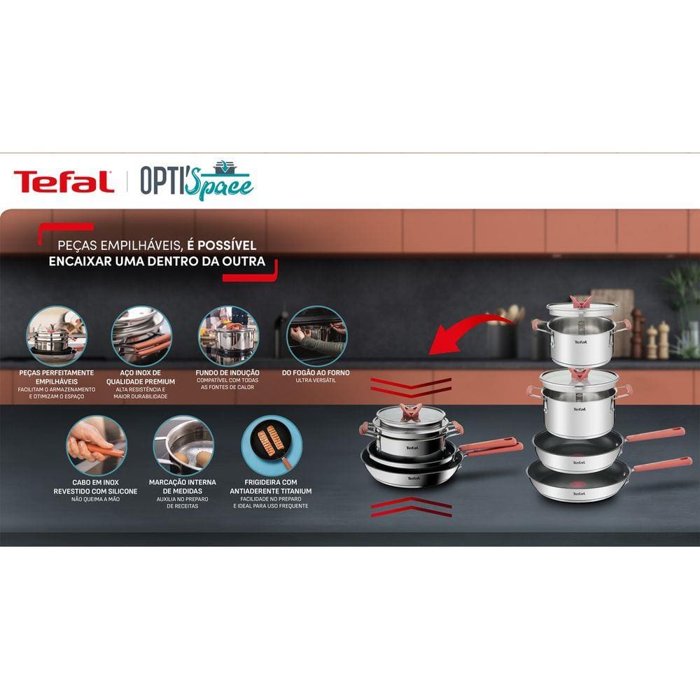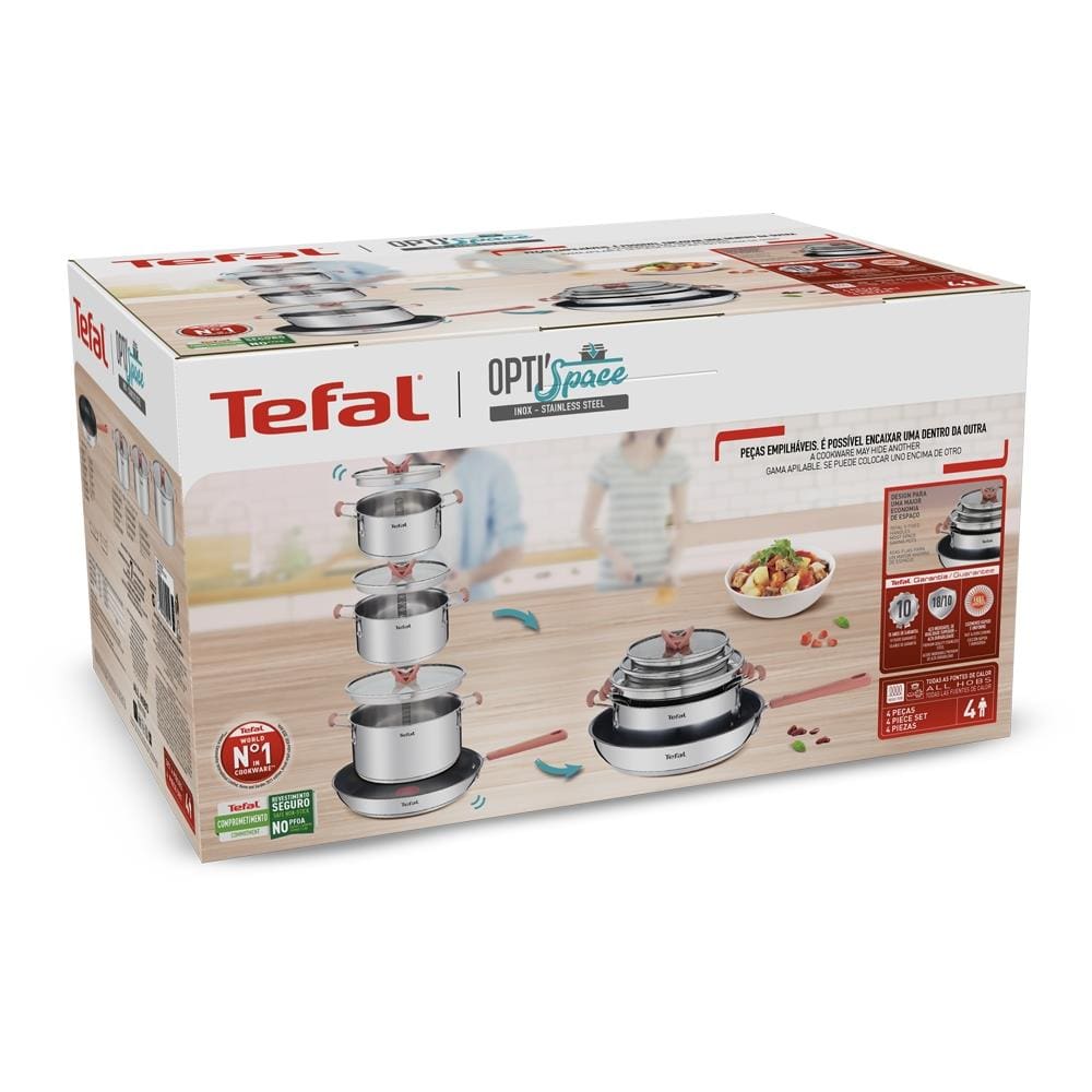 Jogo de Panelas 4 Peças Tefal Opti’Space Revestimento Antiaderente Tampas de Vidro Inox