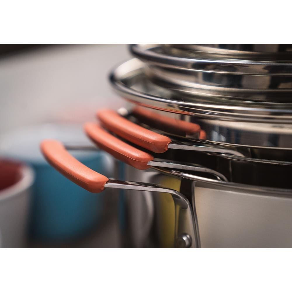 As alças revestidas em silicone garantem conforto e segurança no manuseio, tornando o Conjunto T-FAL Opti’Space a escolha ideal para quem busca funcionalidade, estilo e desempenho na cozinha.