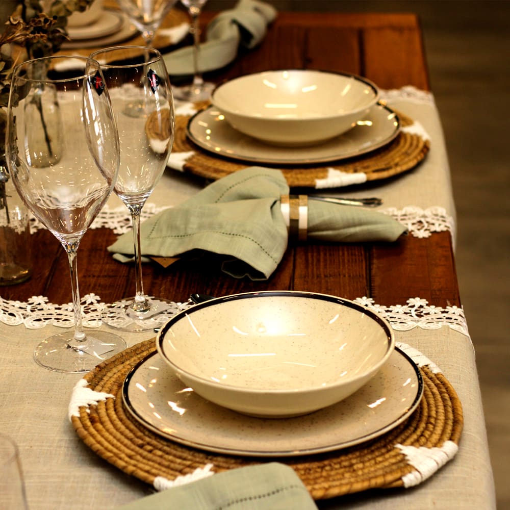 O design biofílico do aparelho de jantar busca reconectar você com a natureza por meio de formas orgânicas e texturas suaves, criando uma atmosfera acolhedora e elegante para qualquer ocasião. Ideal para quem valoriza beleza, funcionalidade e bem-estar à mesa.