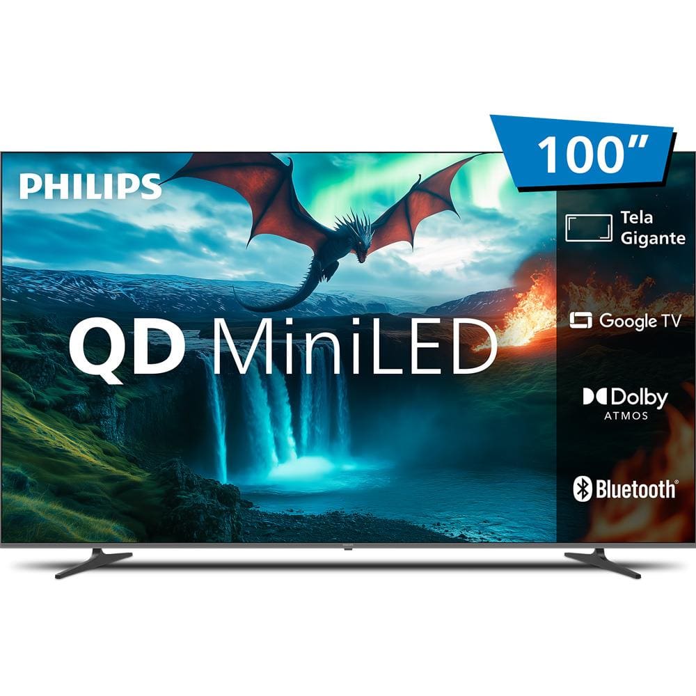 Smart TV QD-MiniLED 100" Ultra HD 4K Philips 100MLED800 com Google TV, Wi-Fi, Entradas HDMI e USB