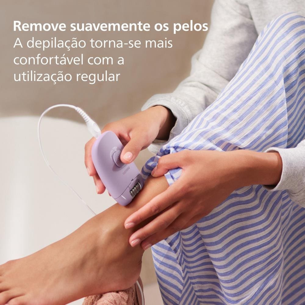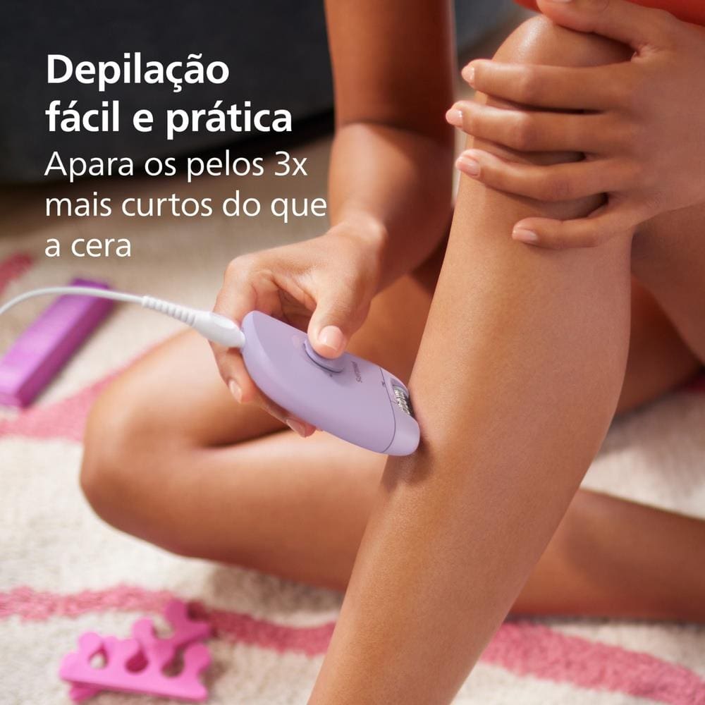 Para garantir ainda mais versatilidade, acompanha cabeçote aparador com pente, ideal para áreas sensíveis e retoques rápidos. A capa massageadora reduz a sensação de puxão e proporciona uma depilação mais confortável. E para facilitar a limpeza, a cabeça depiladora é lavável e vem com escova própria para higienização.Diga adeus às lâminas, use o Depilador Philips Satinelle e sinta sua pele macia lisa por mais tempo e com muito mais conforto.
