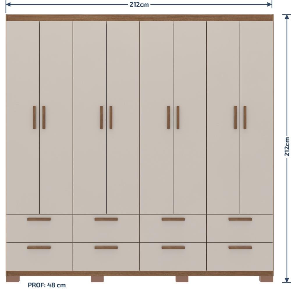 Com estrutura firme e estável, o modelo conta com pés plásticos de 50mm, garantindo segurança e ventilação adequada. O Roupeiro Bartira Coimbra é um móvel de qualidade, espaçoso e com visual atemporal.