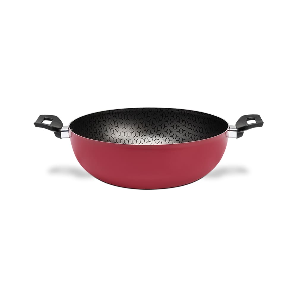 Panela Wok Brinox Anis Alças Baquelite Antiaderente Pro-Flon 4,1L 28cm Tampa de Vidro Borgonha