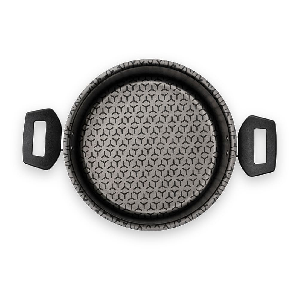 Revestimento antiaderente Pro-Flon (PFOA Free) que reduz o uso de óleo, evita que os alimentos grudem e facilita a limpeza.