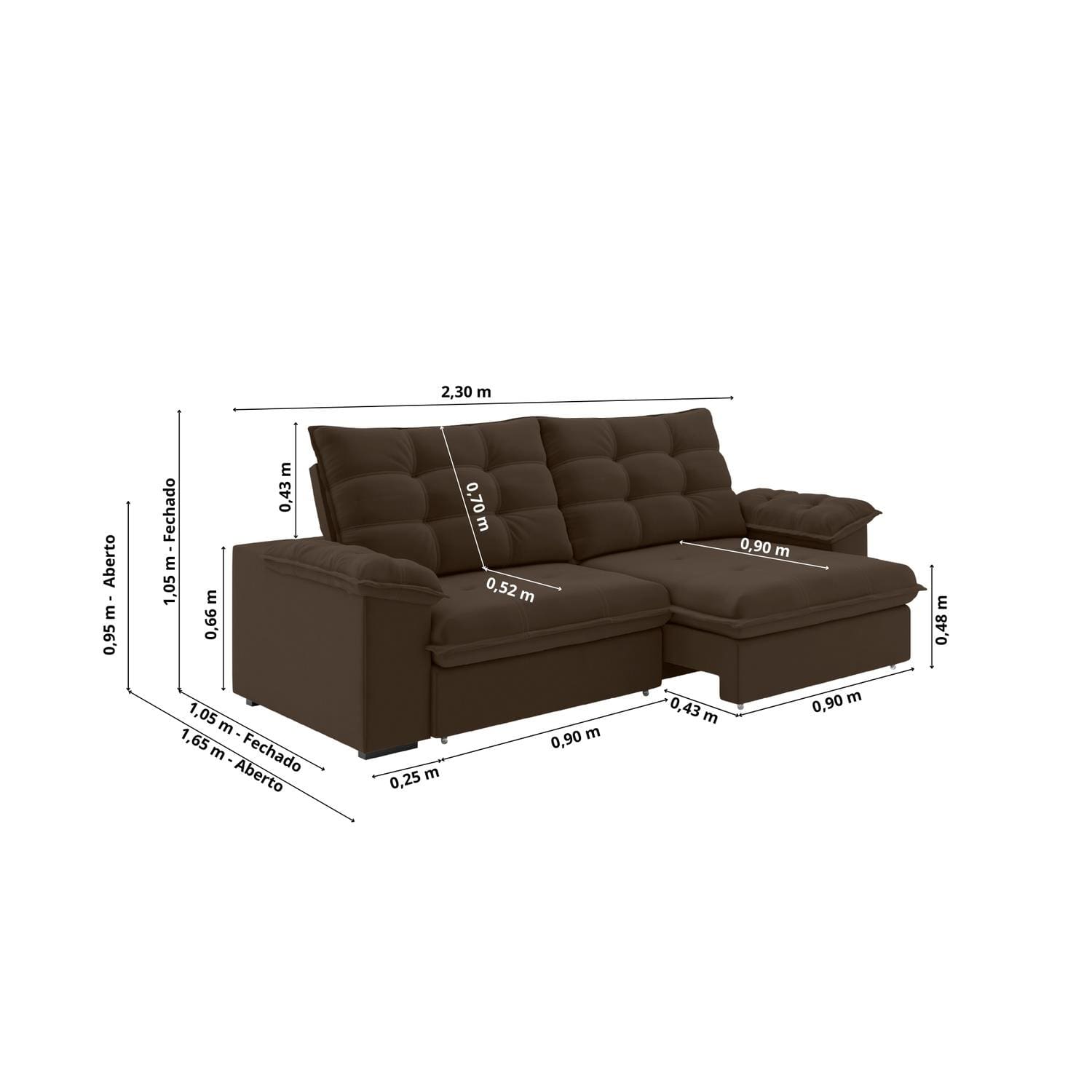 Com encosto reclinável e assento retrátil com extensão, proporciona uma experiência relaxante para momentos de descanso ou lazer. Os braços laterais e a divisão entre os lugares valorizam ainda mais o design moderno e funcional.