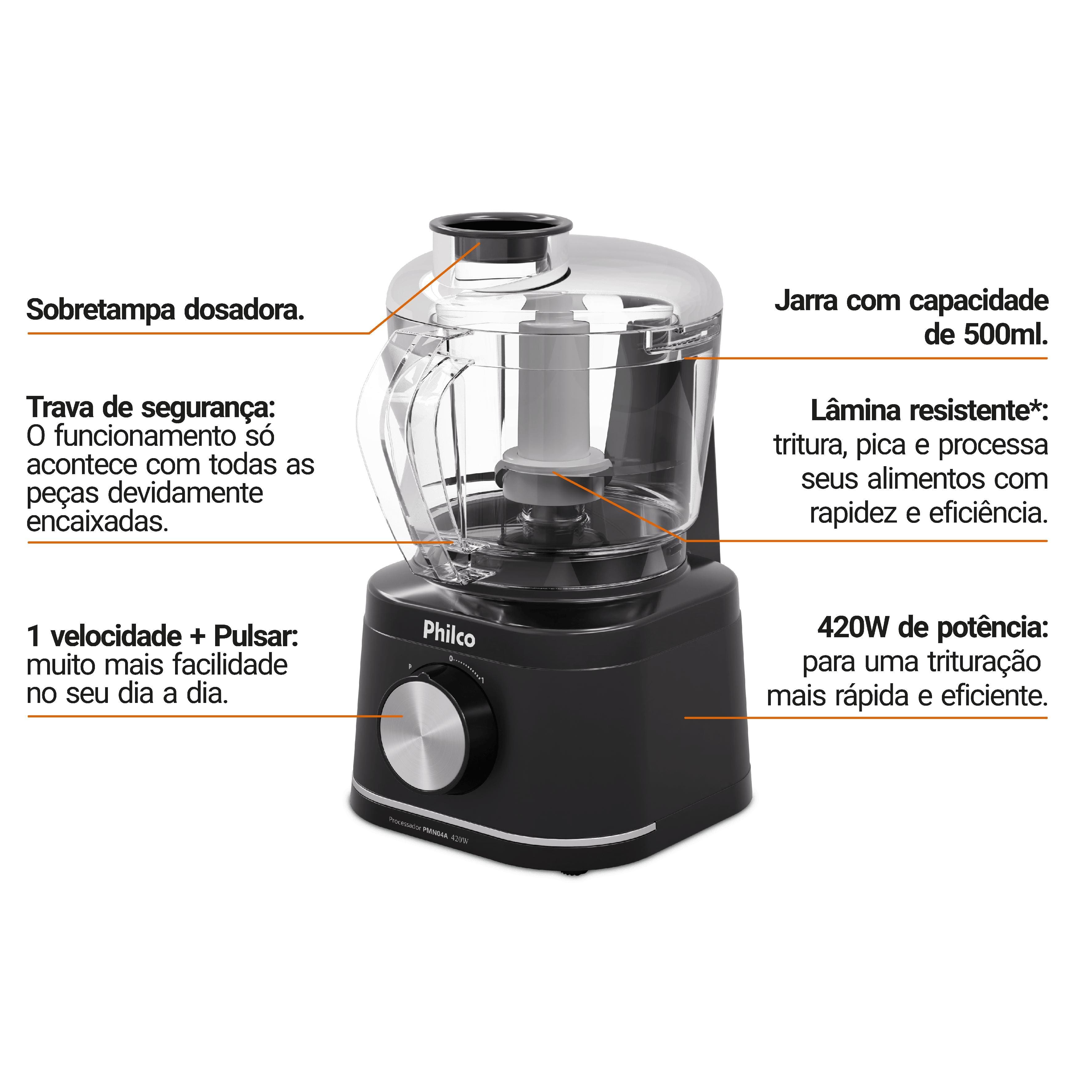 Processador de Alimentos Philco PMN04A 420W 500ml Trava de Segurança Preto