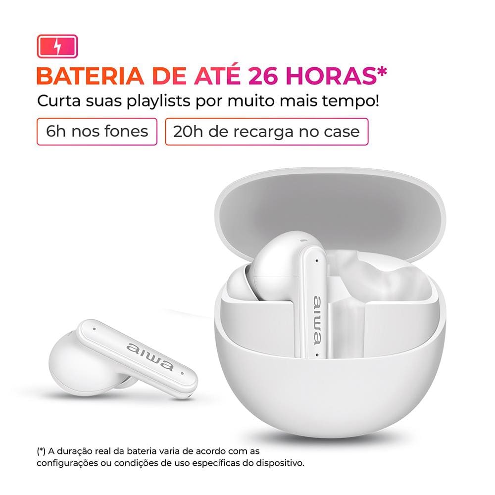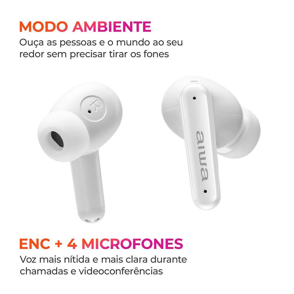 O Fone de Ouvido Earbud AIWA AWS-EB-04W entrega áudio de alta definição, conforto e tecnologia. Equipado com drivers de neodímio e diafragma composto, entrega graves potentes e agudos cristalinos, garantindo uma experiência sonora rica e equilibrada.