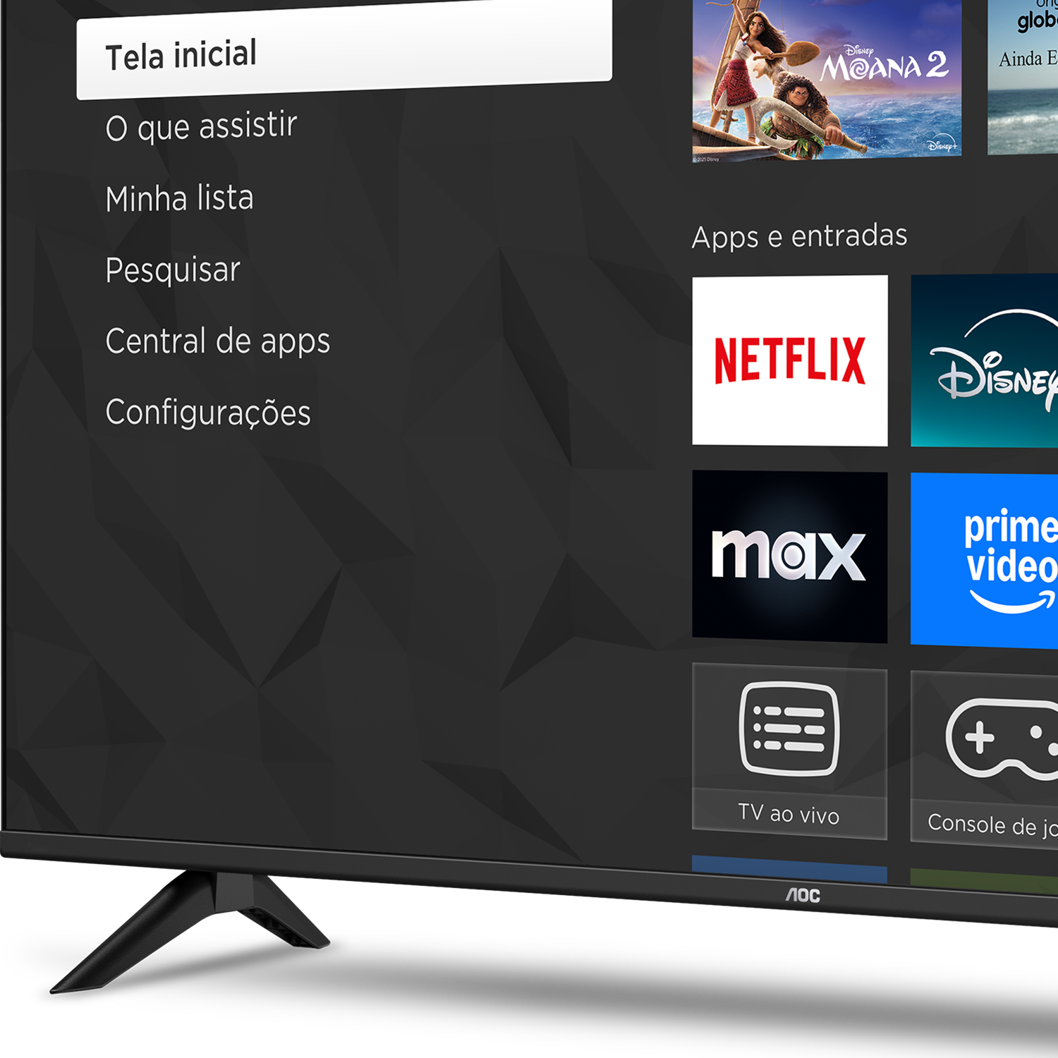 Equipada com sistema operacional Roku TV, a TV traz milhares de aplicativos como Netflix, YouTube, Prime Video, Disney+, Star+, MAX, Apple TV, Spotify e muitos outros disponíveis na Roku Store. Além disso, é compatível com Google Assistant, Alexa e Apple Home, proporcionando mais conectividade no dia a dia.