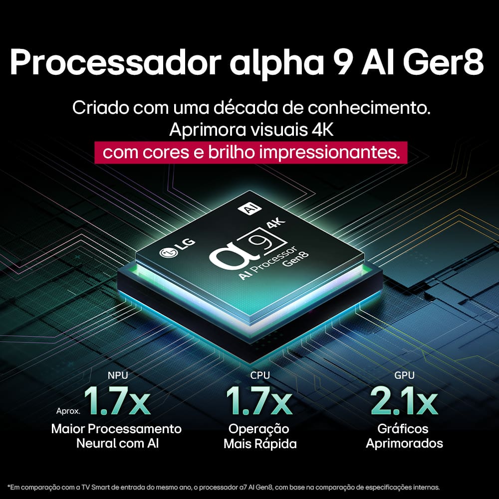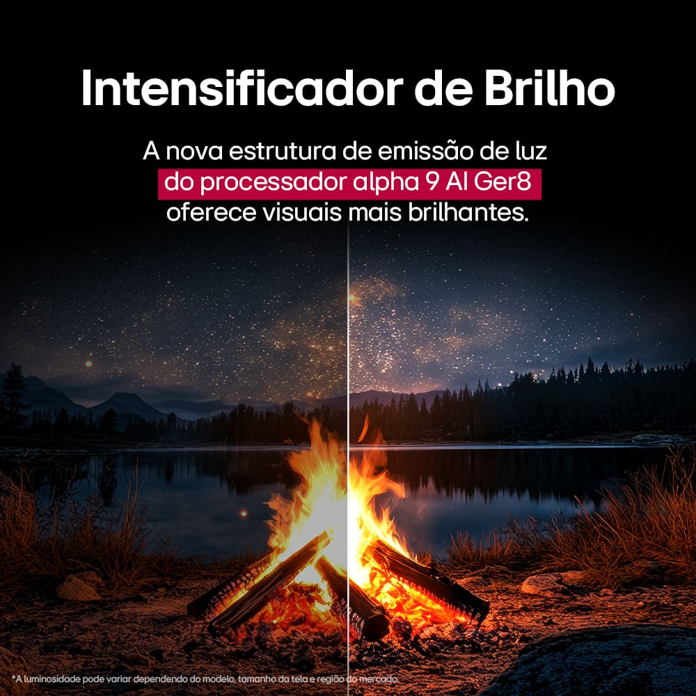 Smart TV OLED 4K 55” LG OLED55C5PSA - Eleve sua experiência visual a outro patamar com tecnologia de ponta em imagem, som e conectividade! Com resolução 4K Ultra HD (3.840 x 2.160) e painel OLED, cada pixel se autoilumina, oferecendo preto puro, contraste profundo e 100% de fidelidade e volume de cores. O a9 AI Processor de 8ª Geração aprimora cada cena com inteligência artificial, garantindo detalhes impressionantes, mesmo em cenas escuras. A tecnologia Brightness Booster traz mais brilho e impacto para os elementos visuais. Com taxa de atualização de até 144Hz, G-Sync e FreeSync, você obtém movimentos ultrafluídos e sem distorções, atendendo até os para gamers mais exigentes. O áudio não fica para trás: som surround 2.2 canais com 40W, Dolby Atmos e Dolby Vision criam uma atmosfera imersiva que combina perfeitamente com a imagem vibrante. O WebOS 25 traz navegação intuitiva, com acesso direto a apps como Netflix, Amazon Prime Video, Max e Disney+. O AI Magic Remote com botão dedicado à inteligência artificial permite controle por voz, além de funções práticas como “arrastar e soltar”. Conectividade completa com Wi-Fi 6, Bluetooth 5.3, 4 entradas HDMI, 3 USB, saída óptica digital, entrada RF, Ethernet e entrada AV. Design Ultra Slim e elegante na cor Charcoal Black, compatível com suporte VESA 300x200. Imagem realista, som envolvente e tecnologia de ponta no entretenimento doméstico.