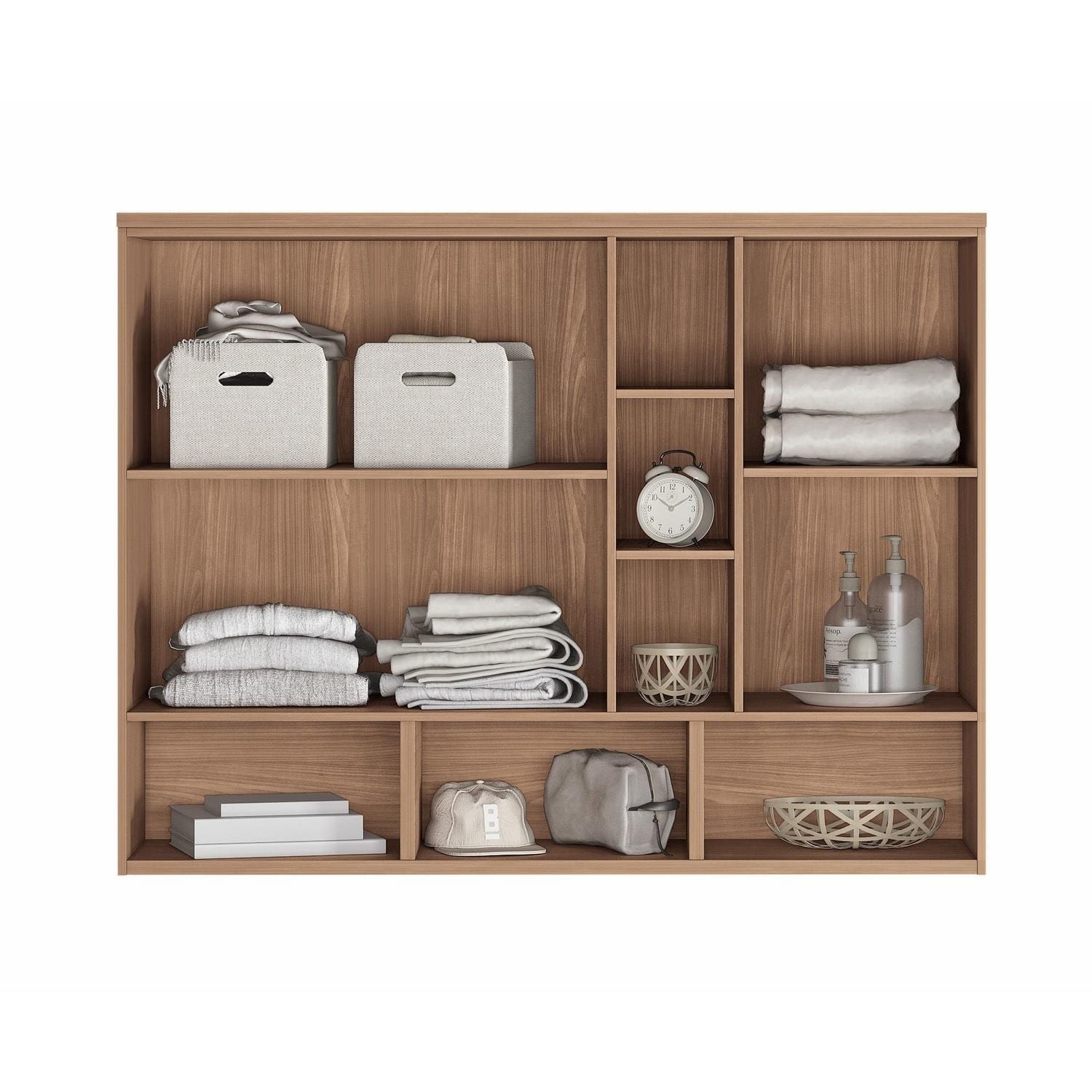 Para aplicação acima da cama box casal de 1,38 m, o módulo oferece amplo espaço para armazenar travesseiros, cobertores e lençóis, mantendo o ambiente sempre organizado e sofisticado.