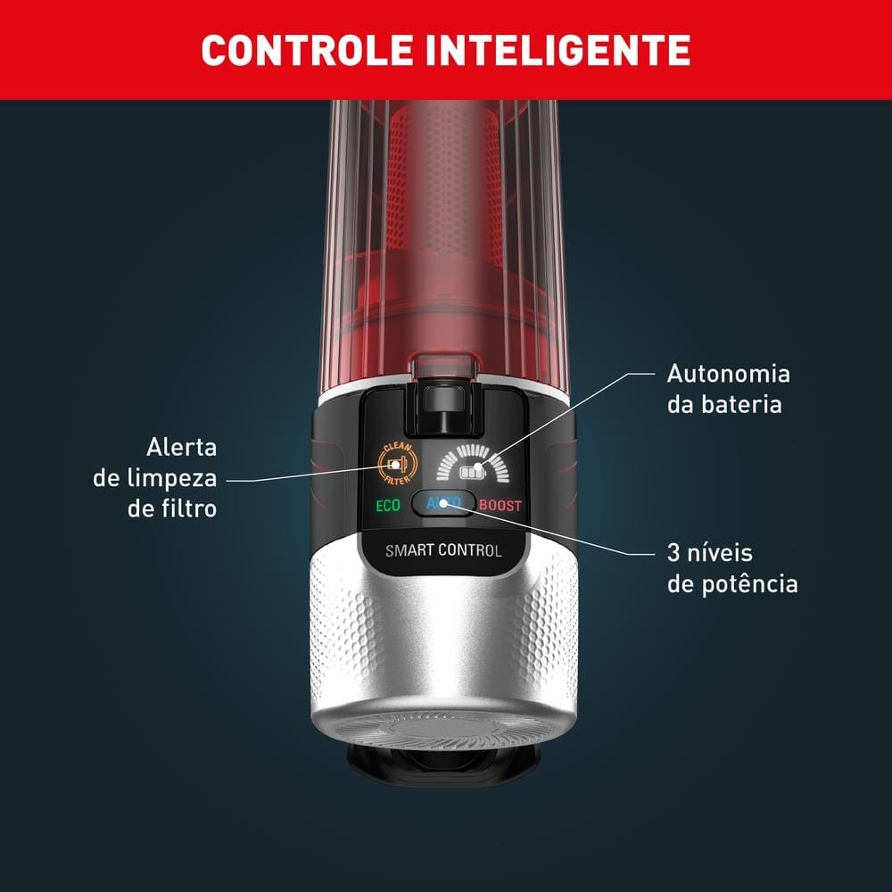O Aspirador de Pó Vertical Sem Fio Arno X-Force Flex 9.60 RH20 - Incrivelmente versátil, potente e leve! Surpreendentemente leve e ultra eficiente, ele traz a exclusiva tecnologia de tubo flexível e o ajuste automático de sucção para uma limpeza completa e sem esforço em todos os cantos da casa. Potência 250W Com 250W de potência e autonomia de até 45 minutos, garante desempenho constante em porcelanatos, tacos, tapetes e carpetes. Sua escova com luz LED ilumina áreas escuras, revelando sujeiras escondidas para uma limpeza mais precisa. Tecnologia Cyclonic Equipado com tecnologia Cyclonic, o Arno X-Force Flex 9.60 separa partículas do ar com altíssima eficiência, atingindo até 99,9% de filtragem. Possui 3 níveis de sucção e um modo Boost para sujeiras mais difíceis, além de display digital inteligente com informações sobre bateria, potência e alerta de limpeza de filtro. 2 em 1 O aspirador é 2 em 1: pode ser usado como aspirador vertical ou de mão, indicada para pisos, frestas, cortinas e estofados. A Escova Turbo Animal garante a remoção fácil de pelos de animais, tornando a limpeza de sofás e carpetes ainda mais prática.
