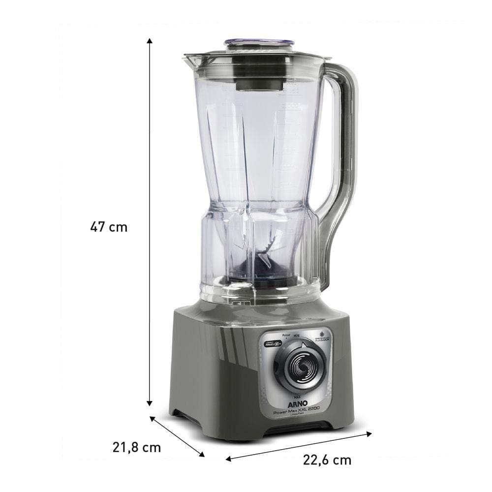 Liquidificador Arno Power Max XXL LN87 2200W Jarra 2,25L 6 Lâminas Powelix Cinza