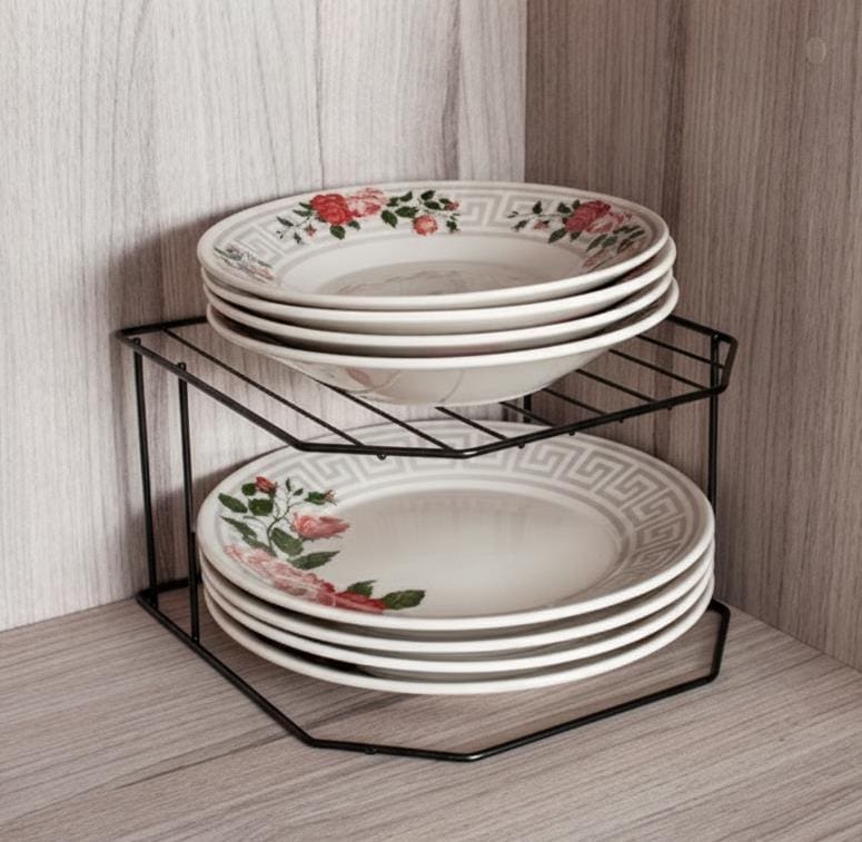 O Suporte Duplo para Pratos Preto da Utimil é perfeito para quem deseja otimizar espaço e manter a cozinha organizada com elegância. Com dois andares, ele permite acomodar pratos grandes, médios e pequenos de forma prática e funcional.