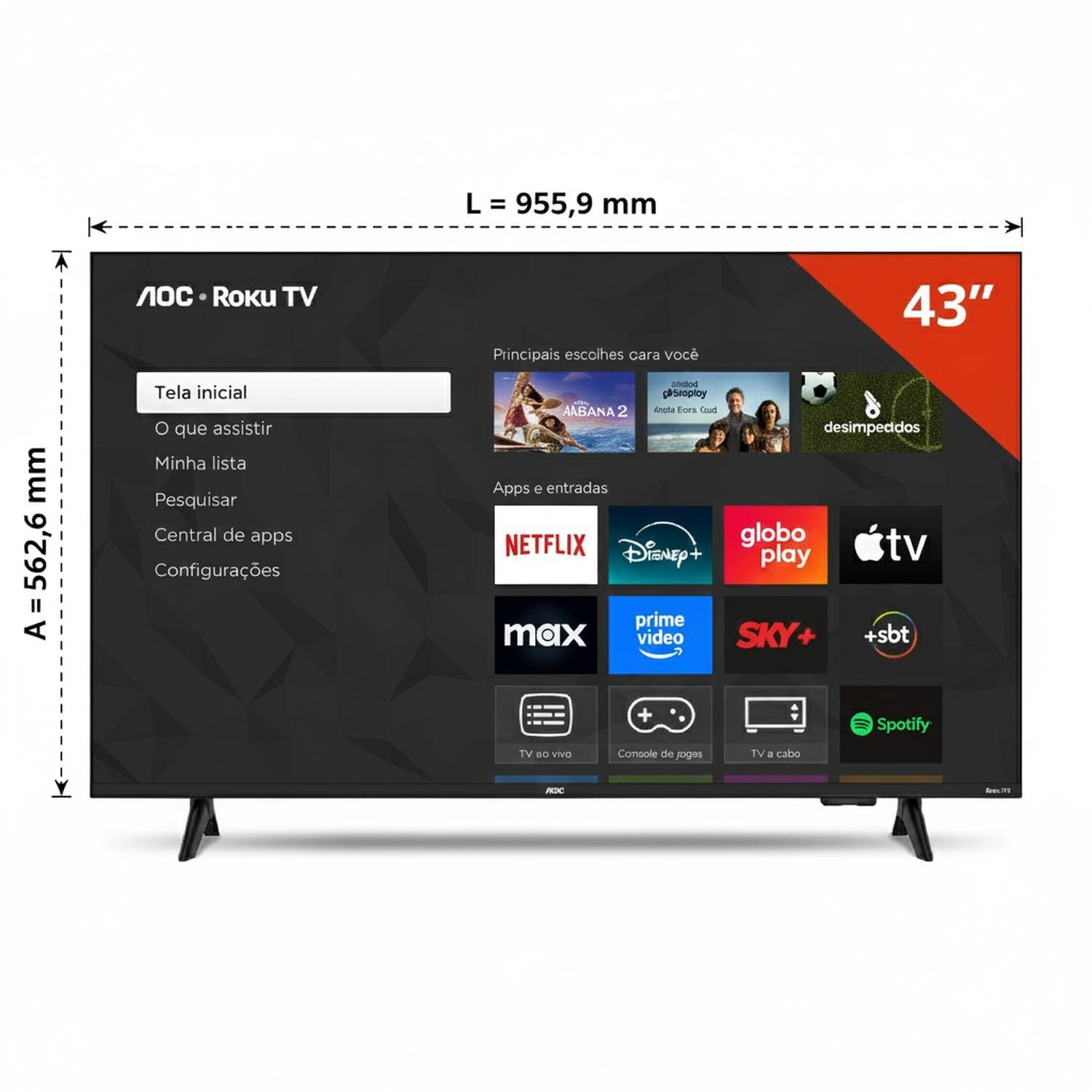 A Smart TV 43” AOC Roku TV 43S5155/78G oferece praticidade e entretenimento completo com sistema Roku TV, reunindo milhares de aplicativos e os principais serviços de streaming em uma navegação simples e intuitiva.
