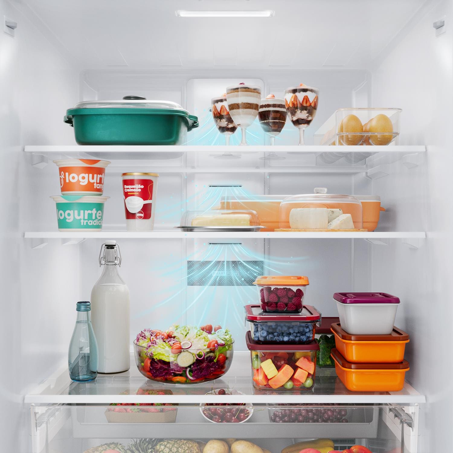 A gaveta Fresh Box preserva frutas e legumes frescos por até 15 dias, enquanto o Carbon AirFilter elimina odores indesejáveis. Com Smart Cold e Smart Flow, a temperatura é controlada com precisão e distribuída igualmente, mesmo com abertura frequente das portas.