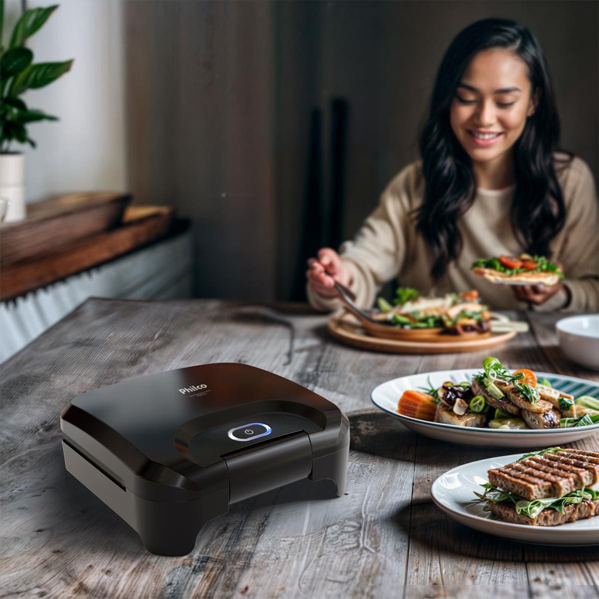 A Sanduicheira Grill PGR25A da Philco é perfeita para preparar lanches rápidos com praticidade e segurança. Com design compacto e acabamento preto, ela combina funcionalidade e estilo.