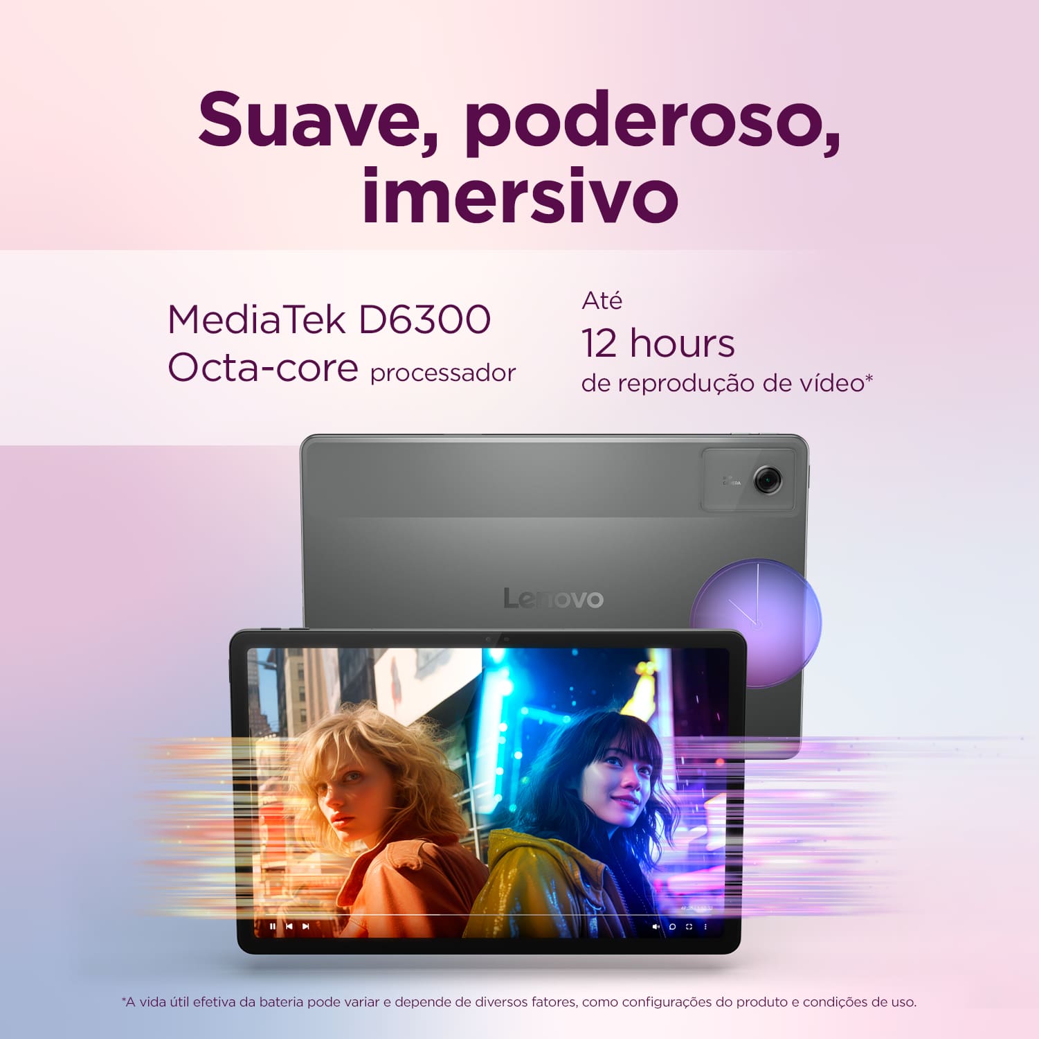 Equipado com o processador MediaTek D6300 e 8GB de memória RAM, o tablet oferece desempenho aprimorado para multitarefa, garantindo uma experiência mais fluida no dia a dia.