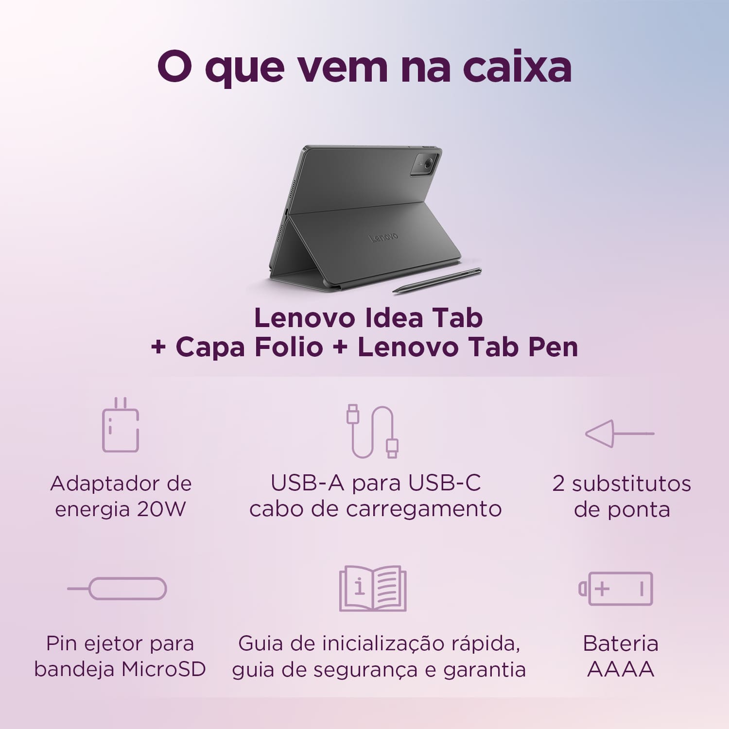 Com bateria de longa duração e acessórios inclusos, o Lenovo Idea Tab entrega praticidade e eficiência nos estudos e no trabalho.