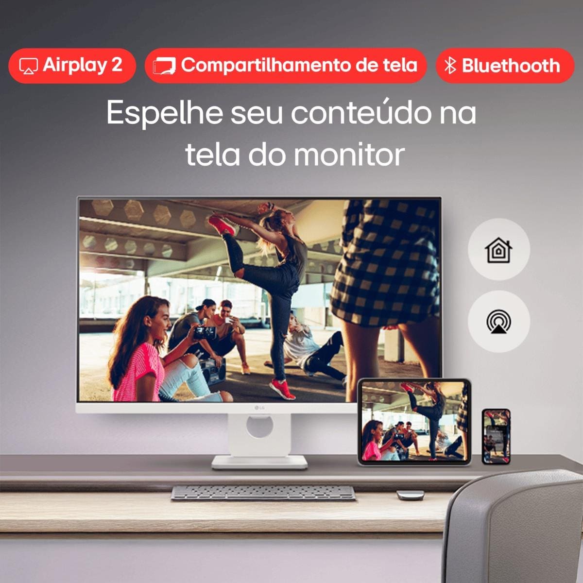 - Integração com LG ThinQ Home, facilitando o controle de dispositivos inteligentes diretamente pelo monitor.
