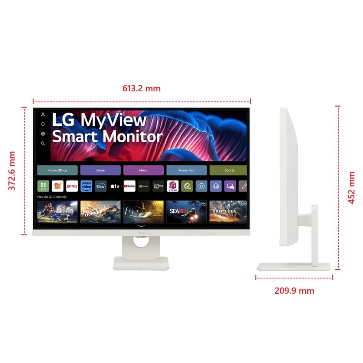 Com design slim, acabamento branco e suporte de estilo plano com ajuste de inclinação, o Monitor LG MyView Smart se adapta facilmente a diferentes ambientes, unindo funcionalidade e elegância.