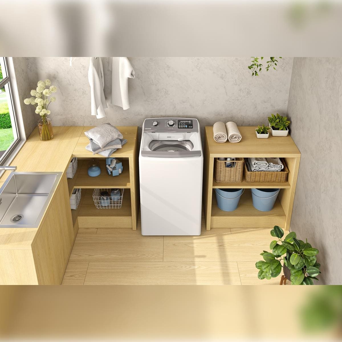 A lavadora possui tampa com trava durante os processos de enxágue e centrifugação, oferecendo mais segurança no uso diário.