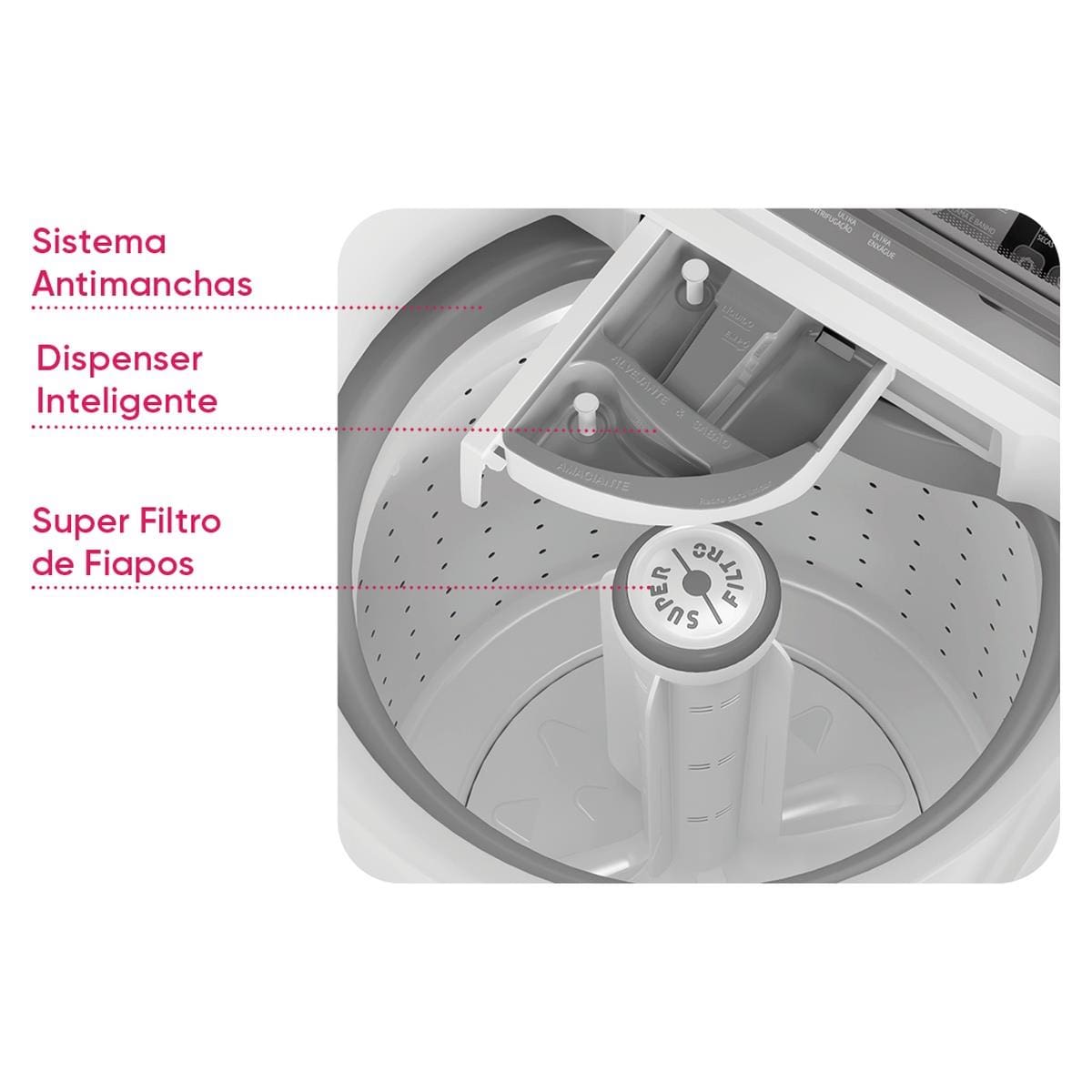 Seu sistema antimanchas aliado ao dispenser inteligente garante melhor distribuição do sabão e do amaciante, contribuindo para uma lavagem mais eficiente.