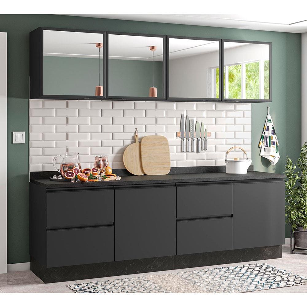 Cozinha Completa Bartira Línea com 6 Portas, 6 Gavetas e 4 Prateleiras - 240cm de largura - Grafite