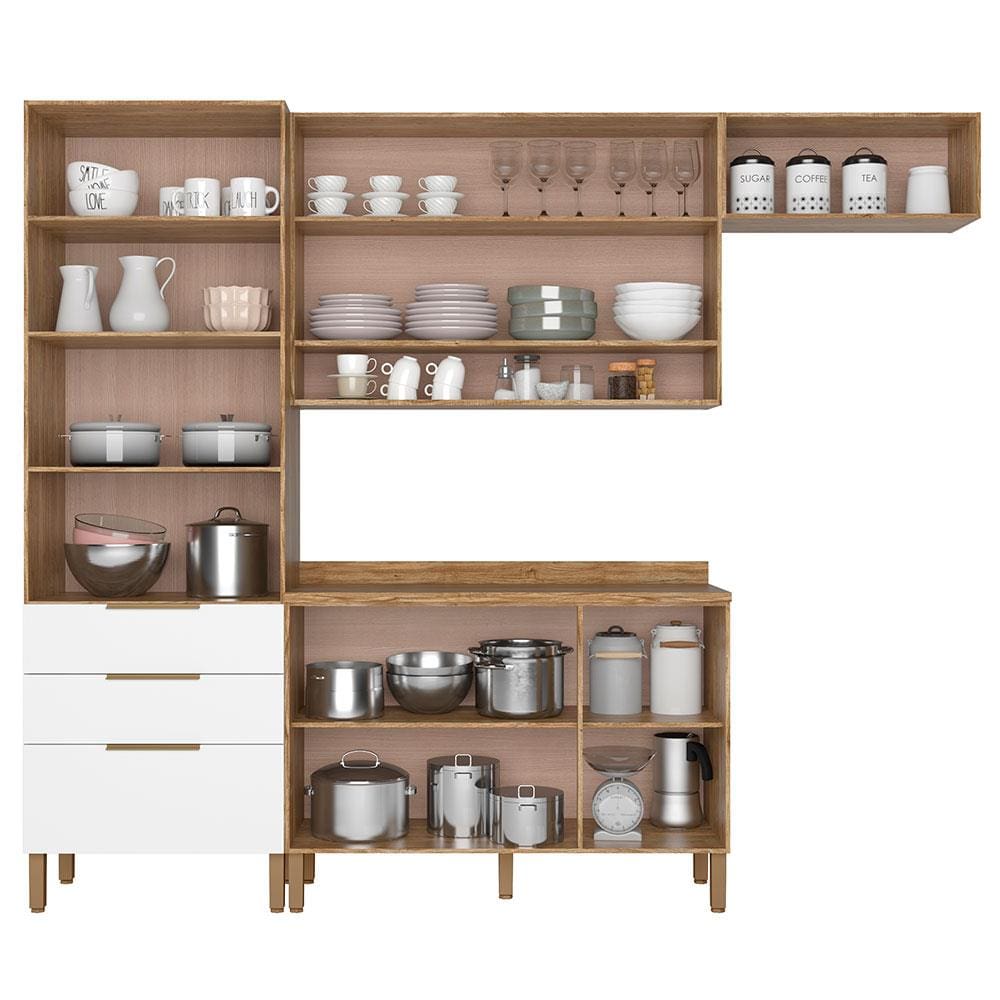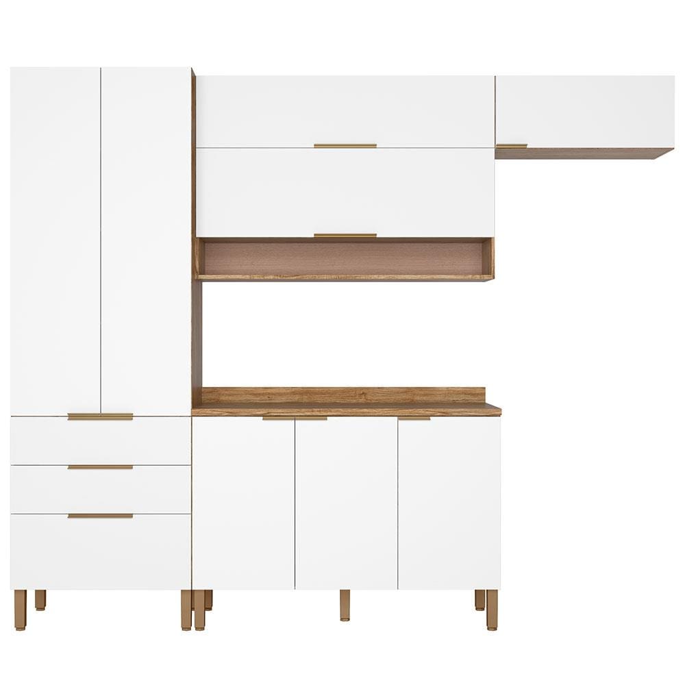 Cozinha Compacta Bartira Topázio UP com 8 Portas, 3 Gavetas e 5 Prateleiras - 262,5cm de largura