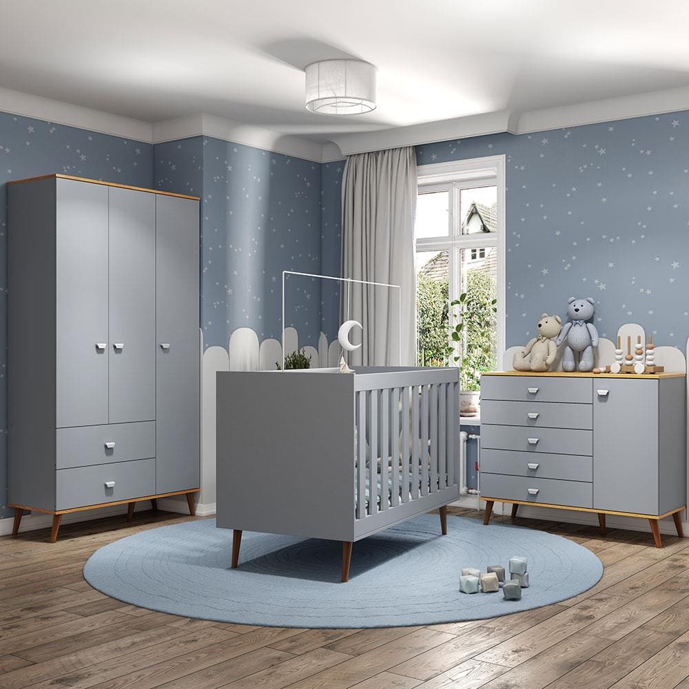 Produzido em madeira 100% MDF e com pés de madeira maciça, sua durabilidade e estabilidade são incomparáveis. Além disso seu acabamento é feito com com pintura atóxica, o que garante um ambiente tranquilo e sem odores que podem causar incômodo ou irritabilidade ao bebê (e as mamães e papais).