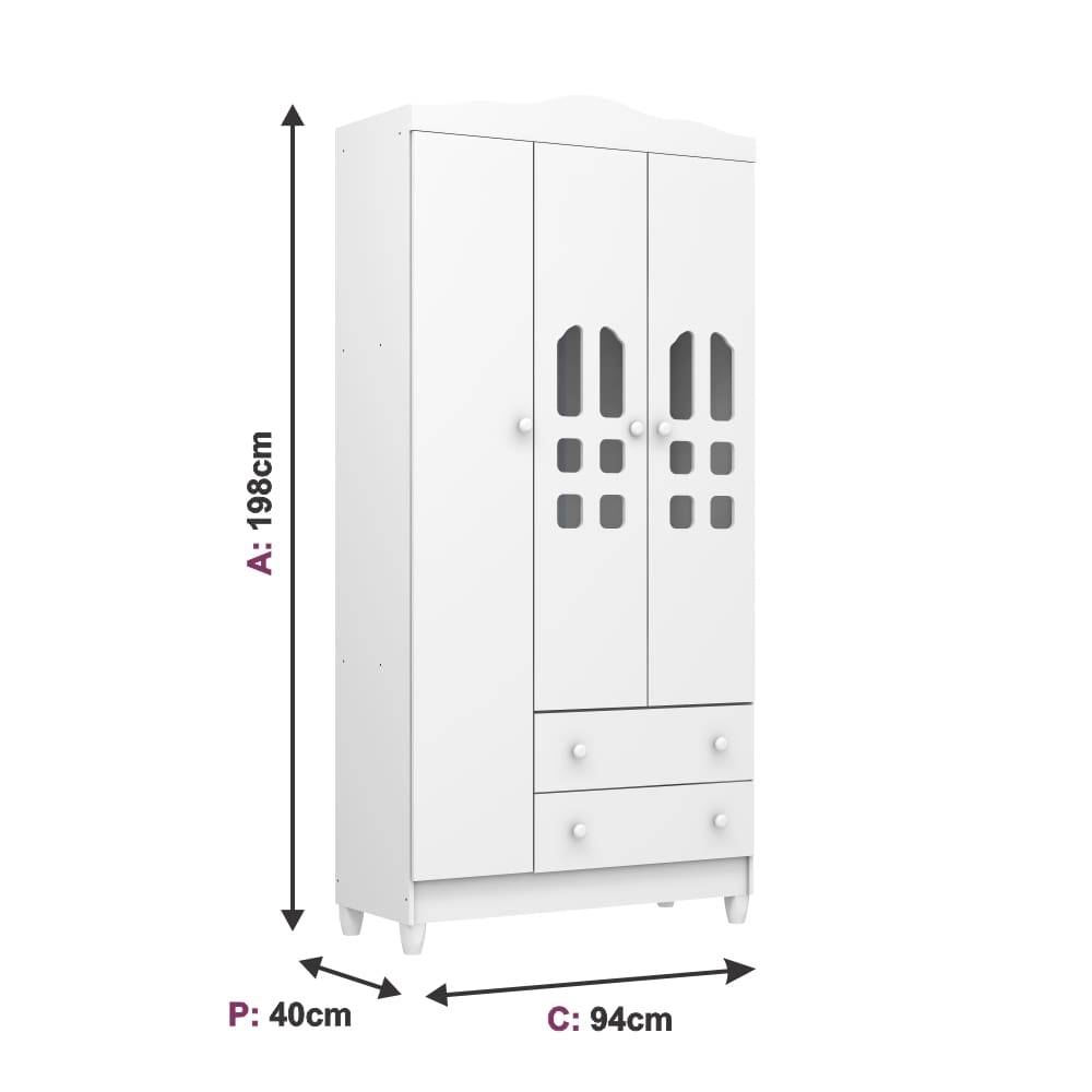 Quarto de Bebê Completo Carolina Baby – um sonho de quartinho! O Quarto de Bebê Completo Carolina Baby reúne praticidade, funcionalidade e estilo em um só conjunto. Composto pelo berço mini-cama Mirelle, a cômoda Eloa e o guarda-roupa Eloá, este kit organiza e decora o ambiente do seu bebê com elegância e segurança. Cômoda Infantil Carolina Baby Eloá A Cômoda Infantil Carolina Baby Eloá possui 3 gavetas, 1 porta com vitrine em acrílico e 1 prateleira. Conta com fraldário integrado, sistema antitombamento, corrediças telescópicas e dobradiças metálicas, garantindo praticidade e durabilidade no dia a dia. Dimensões cômoda: 92,50x95x41cm. Berço Mini-Cama Carolina Baby Mirelle O Berço Mini-Cama Carolina Baby Mirelle é versátil e acompanha o crescimento da criança, pois se transforma em mini-cama. Com acabamento em pintura UV atóxica, suporte para mosquiteiro, regulagem de altura do colchão e rodízios com travas, oferece segurança e conforto para o bebê. Dimensões: 101x15,40x78cm e suporte até 30kg. Guarda-Roupa Infantil Carolina Baby Eloá Já o Guarda-Roupa Infantil Carolina Baby Eloá conta com 3 portas, 2 gavetas e 4 prateleiras, além de vitrine em acrílico que facilita a visualização dos itens. Fabricado em MDF com pés em PVC, apresenta pintura laqueada fosco com laterais amadeiradas e acabamento UV atóxico, unindo durabilidade e design moderno. Dimensões: 196x94x40cm e Peso: 51,50 kg.