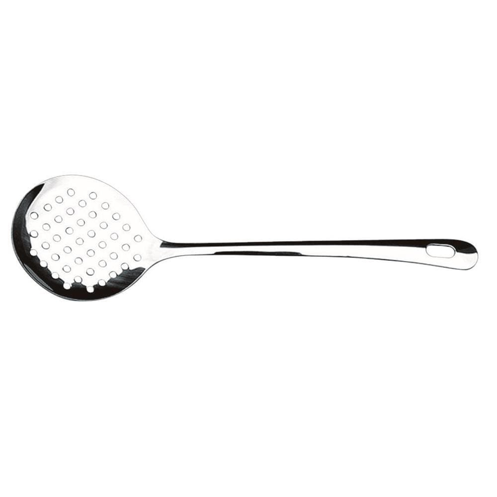 Ela conta com base ampla e bordas levemente elevadas que permitem secar e servir alimentos que foram cozinhados em óleo ou água com facilidade e rapidez. Além disso, ela possui orifício na extremidade do cabo que permite pendurá-la e mantê-la sempre à vista, tornando sua cozinha mais bela e funcional.