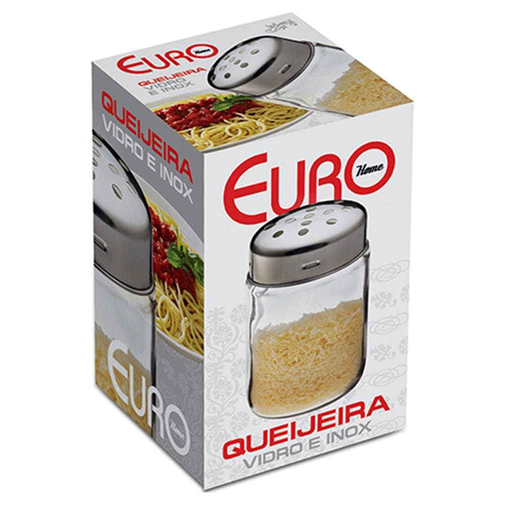 Fabricado em vidro e inox e com tampa plástica este utensílio da Euro Home é ideal para armazenar e levar queijos ralados à mesa. Também pode ser utilizado para polvilhar açúcar, canela e outros ingredientes em pó nas receitas.