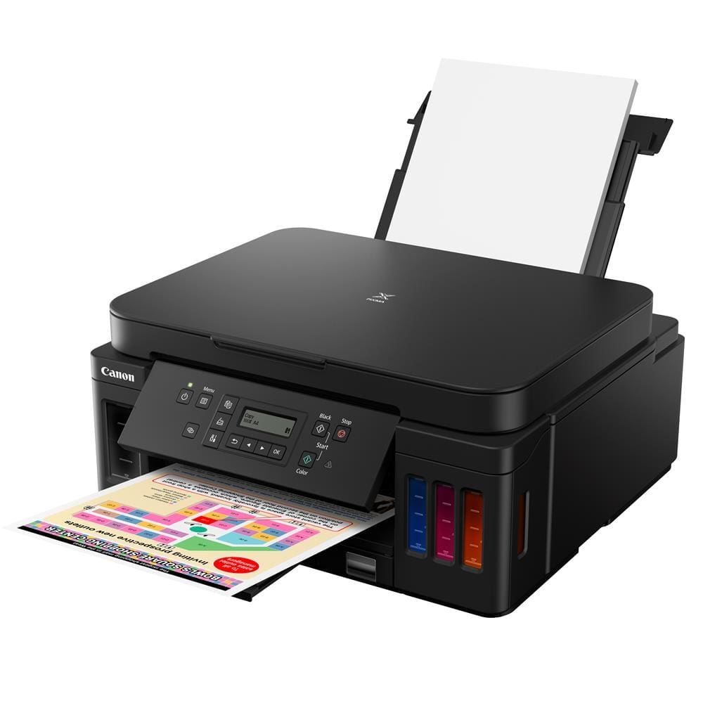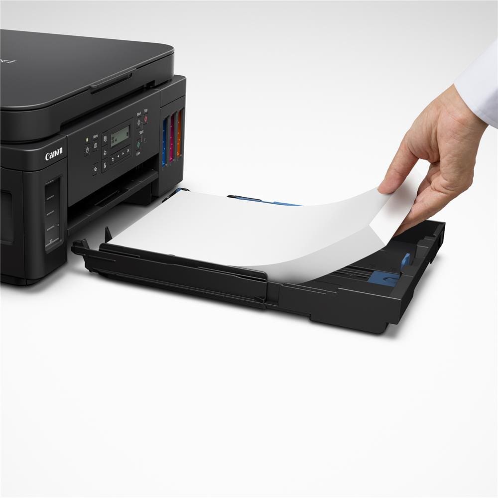 Além da flexibilidade e da conveniência, a Mega Tank G6010 faz impressão frente e verso automática e apresenta capacidade de papel para 350 folhas, ao utilizar tanto a bandeja traseira quanto a gaveta dianteira. A velocidade da impressora é de 13 imagens por minuto em preto e branco e 6,8 imagens por minuto em cores. A multifuncional G6010 possui conectividade sem fio via Wi-Fi e o benefício adicional de acesso via aplicativo Canon PRINT Inkjet/SELPHY, permitindo fácil configuração e operações básicas a partir de dispositivos móveis compatíveis. A Mega Tank G6010 também é compatível com o Apple AirPrint e o Google Cloud Print, para impressão a partir do Gmail™ e do Google Docs™ em um dispositivo móvel compatível.