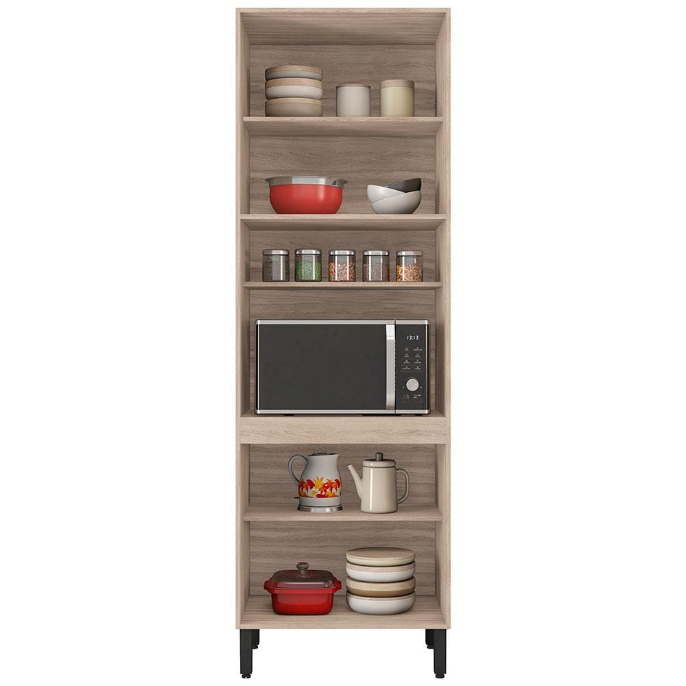 Esse móvel possui estrutura em MDP de qualidade, portas e prateleiras resistentes, nicho para colocar alguns frascos de condimentos e outro adequado para manter o seu micro-ondas muito bem instalado. Ah! O seu acabamento é em pintura UV que possibilita maior durabilidade ao produto e ele é capaz de suportar até 32kg.