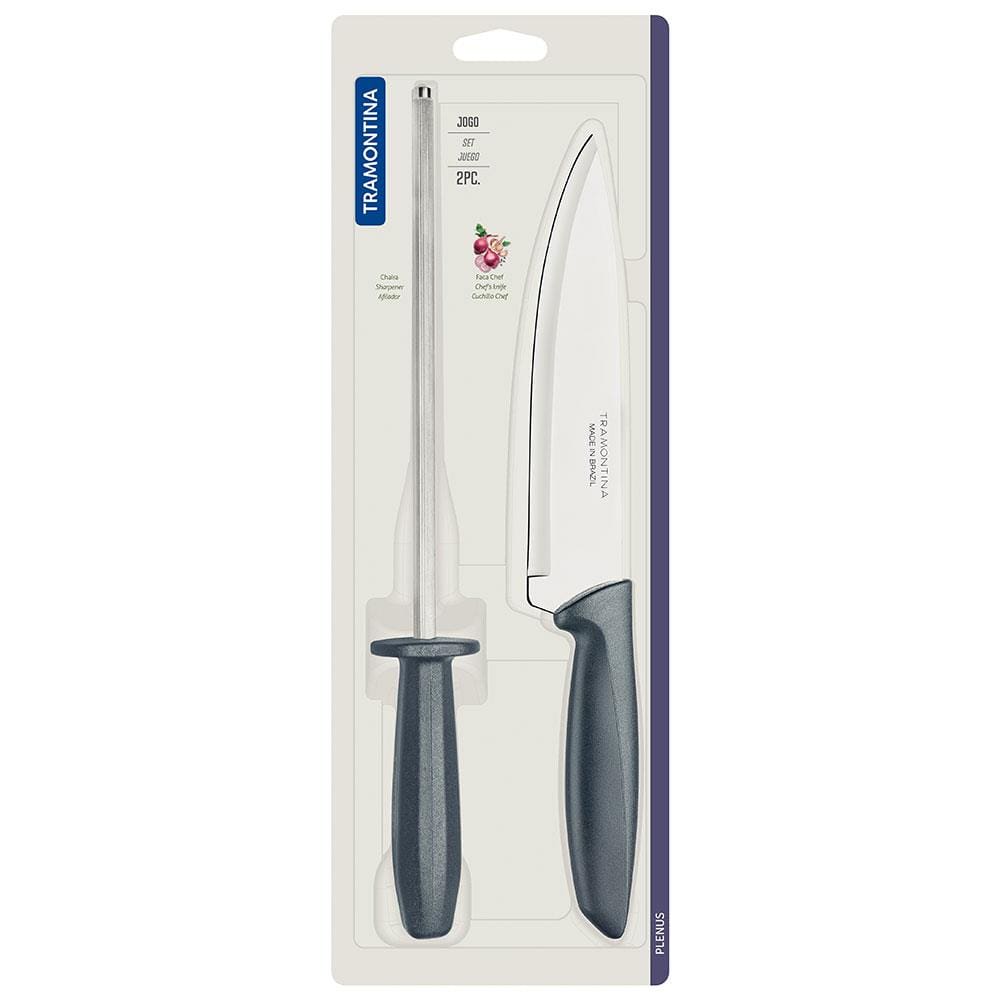 Conjunto Faca Chef e Chaira Tramontina Plenus Cinza - 2 Peças