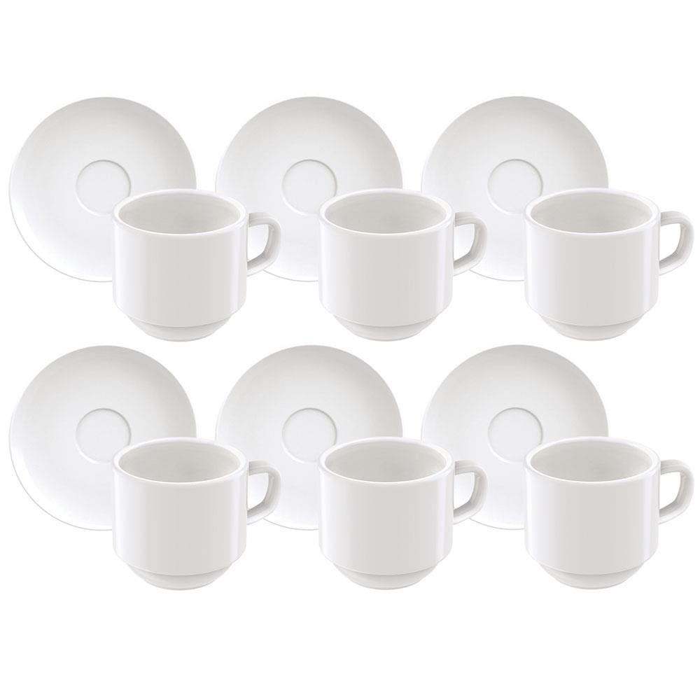 Conjunto com 6 Xícaras e Pires para Café Tramontina Paola em Porcelana Branca - 100 ml