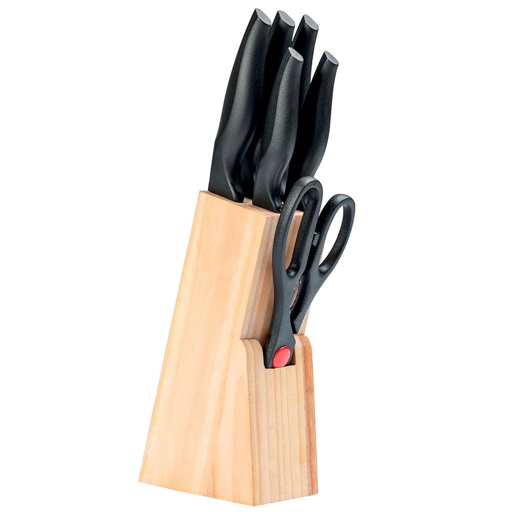 O Faqueiro leva charme, elegância e bom gosto para a composição da sua mesa um exemplo disso é o Jogo de Facas 6 peças com cabo de Plástico com cepo de madeira Pinus um faqueiro clássico preservando a beleza, higiene e a durabilidade do material.