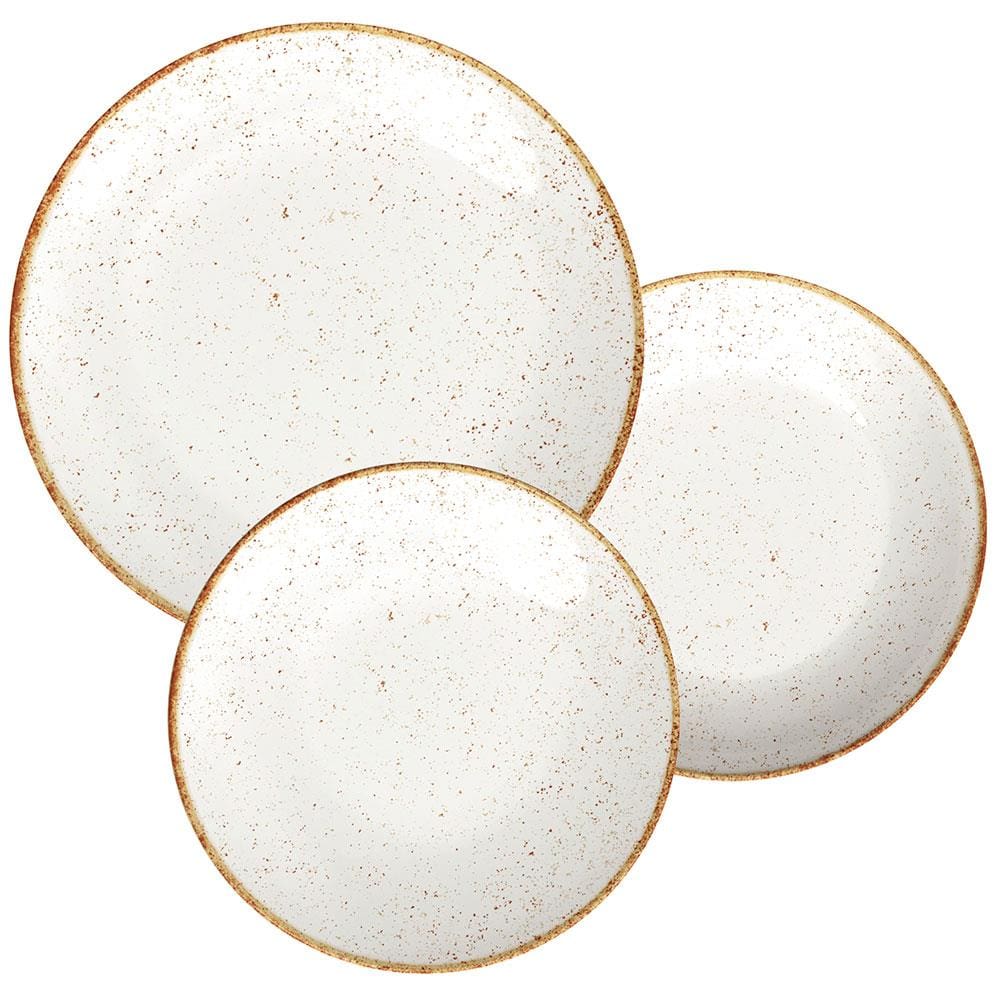 Conjunto com 12 Pratos Tramontina Rústico em Porcelana - Branco/Marrom