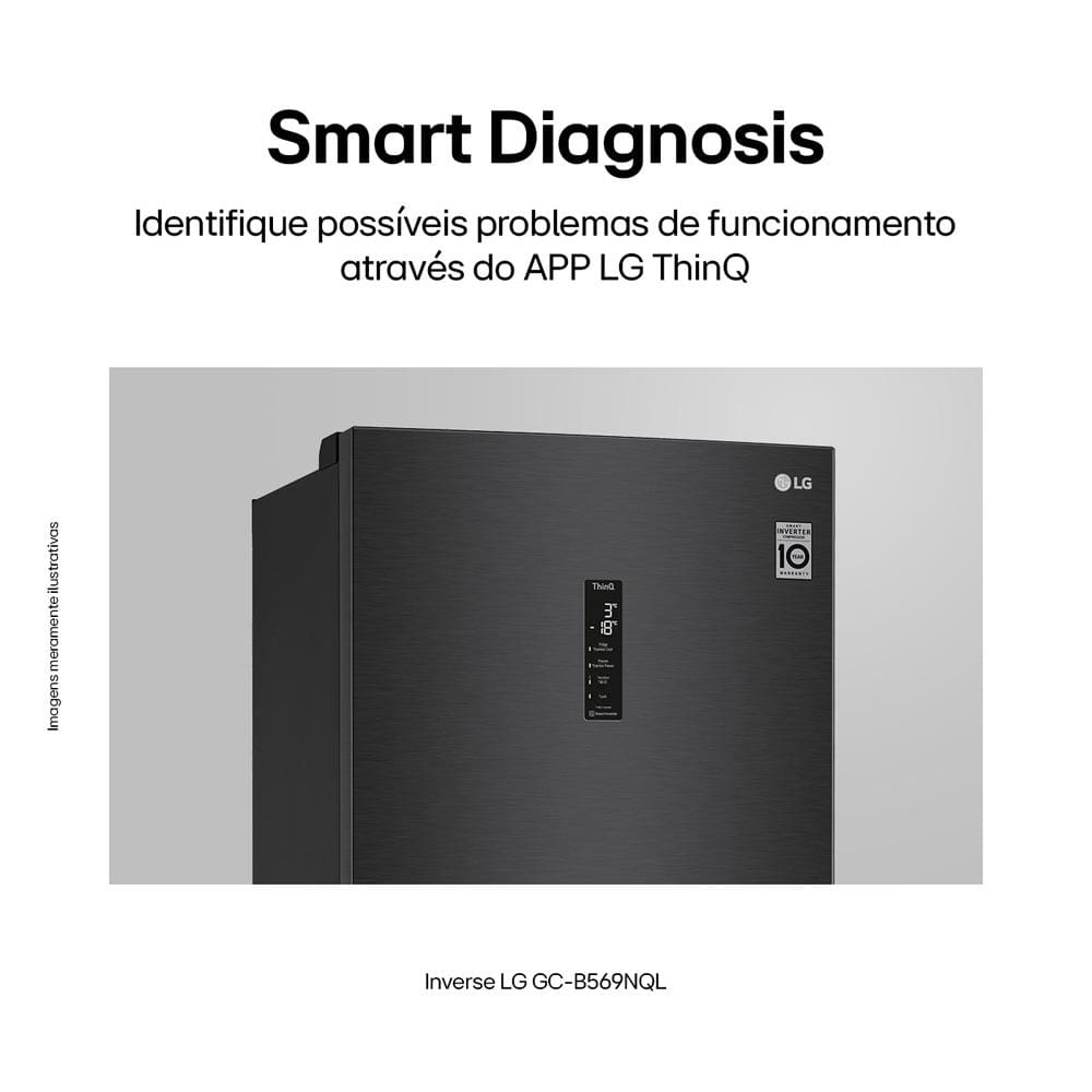 Com o app LG ThinQ®, de qualquer lugar, você monitora o funcionamento da sua geladeira.