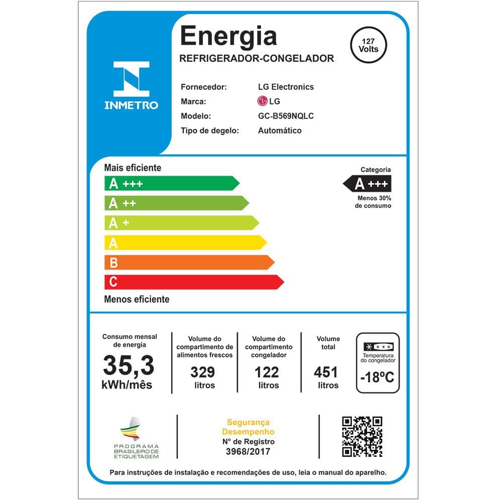 Equipado com o Compressor Smart Inverter, este refrigerador oferece maior economia de energia, silêncio e durabilidade. Com 451 Litros de capacidade, sua classificação energética A+++, você economiza na conta de energia enquanto mantém seus alimentos perfeitamente refrigerados. Além disso, o compressor possui garantia de 10 anos, proporcionando tranquilidade por muito mais tempo.